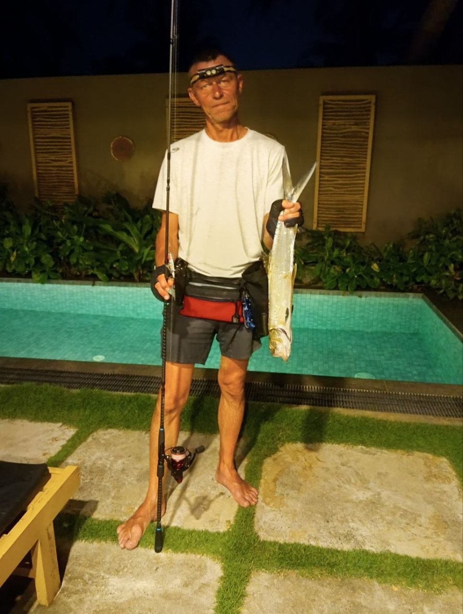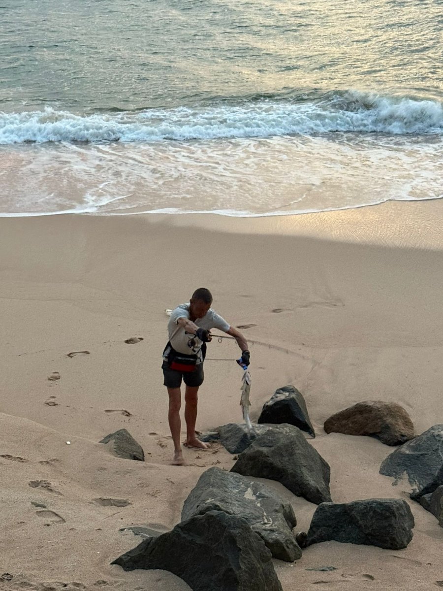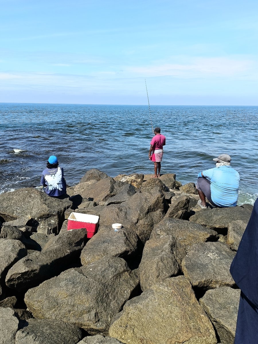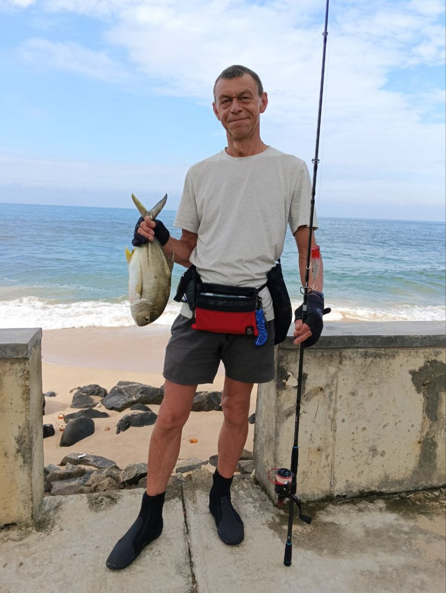 Абалангода в этот отпуск дала мне редкое удобство, от которого потом уже трудно отказаться. Спиннинг стоял в номере собранный, потому что наш гостевой дом на пять номеров стоял прямо на берегу, и вся береговая рыбалка начиналась буквально под окнами. В итоге я даже не исследовал дальний берег так, как обычно это делаю в новой стране. По факту мне вполне хватило скал и пляжа перед домом, а еще места, где озеро впадает в океан. Ходить дальше я ходил, но почти не ловил, потому что рабочая вода оказалась прямо рядом, а отпуск и так пролетел слишком быстро. В сухом остатке у меня осталось ощущение, что недоловил, а у супруги параллельно осталось чувство, что недоплавала. И это, пожалуй, лучше всего описывает поездку. Хорошо, но мало. Погода при этом подвела конкретно. Наверное половину времени стояла такая волна, что нормальный береговой темп просто рассыпался. Это уже моя третья поездка на Шри Ланку. Первая была десять лет назад, вторая в прошлом году, и такой постоянной долбежки в декабре я раньше здесь не видел. Рыбалка у меня в этой поездке не была единственной целью, скорее приятным дополнением к отдыху, адреналину и немного кулинарии. В отеле была кухня, что то я жарил сам, что то относил готовить в кафешку, так что каждый хороший выход на берег сразу превращался еще и в вопрос, что делать с добычей вечером. Само место при этом оказалось очень благодарным именно для жизни рядом с морем. Абалангода не выглядит избалованной туристами. В отличие от Хиккадувы, Унаватуны и похожих раскрученных участков, тут я почти не встретил ни приставал, ни разводил, ни вечных стрелков сигарет. Тихо, просто и по делу. Главная точка у меня быстро сложилась в одну и ту же картину. Большая груда булыжников на впадении озера в океан, место красивое, но в плане безопасности довольно мерзкое. Там легко навернуться, а если клюнет хорошая рыба, ее еще попробуй нормально достань. На этих камнях постоянно сидели местные, и это само по себе было очень полезно. Самая частая их высокотехнологичная снасть выглядела как обычная бобина с леской и чем то вроде джиг головки с люрексом. Они раскручивали это все рукой, бросали и потом так же руками быстро выбирали обратно. Со стороны это выглядело как сцена из старого фильма, но рыбу они таким способом ловили совершенно всерьез. При этом рядом были и вполне упакованные рыбаки со спиннингами. У них видел и попперы, и небольшие воблеры, и ту же самую люрексную джиг головку, и что то похожее на самодур. По моим пилькерам и по более привычной джиговой проводке сначала смотрели скорее с недоверием. У местных логика простая. Закинул и просто тяни. Даже поппер многие здесь не анимируют, а именно тянут равномерно. Ловят при этом не только на рассвете и закате, но и среди дня, и временами это у них работает даже лучше, чем в самые ожидаемые часы. Как только где то всплеск или маленький котел, у них сразу начинается стрельба из всех орудий. Основная их добыча это некрупный каранкс, и именно на этих местных ритмах я лучше понял, как живет конкретно эта точка, а не абстрактная Шри Ланка из форумных легенд. В этот раз я уже приехал относительно подготовленным и не собирался, как в прошлом году, ловить на что попало. Основным комплектом был Zemex 24 Finder Travel 904H, катушка KastKing Sharky 3 в пятитысячном размере, шнур YGK 2 PE и флюр 0.45. В запасе лежал второй комплект, Maximus Smug