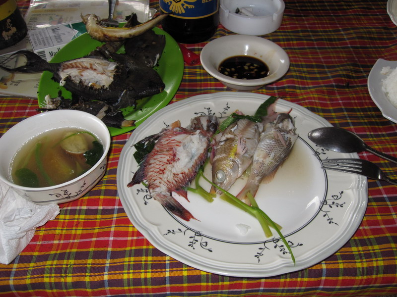Уже ближе к концу отпуска на Боракае ко мне подошел пляжный торговец Jims и предложил вполне конкретную рыбалку с шести до одиннадцати утра за 1600 песо. Ветер был сильный, но я все равно согласился, потому что к этому моменту уже хотелось не теоретизировать про остров, а выйти в море хоть в каком-то рабочем формате. На следующее утро капитан Dino загрузил меня в свою маленькую лодку, сам еще и сети разложил, а меня устроил посередине почти на весло. Ловили на глубине 10-15 метров напротив Puka Beach. Сценарий был честный и без прикрас, место меняли постоянно, но клевала в основном только коралловая мелочь. Если бы оценивать такой выход по спортивной шкале, можно было бы сказать, что рыбалка не удалась, но по ощущениям все вышло гораздо теплее. Крупных мальков мы потом отправили на барбекю, а из остальных сварили местную уху синиганг, и неожиданно именно этот послерыболовный момент стал главным открытием дня. Оказалось, что даже такие мальки не просто съедобны, а действительно вкусны. Под разговоры про жизнь, политику, женщин и обычные рыбацкие байки шесть литров пива на троих улетели незаметно, и за счет этого весь выход запомнился не пустыми поклевками, а очень живой атмосферой. Dino, правда, переживал, что на русском рыболовном форуме потом появятся фотографии пойманой мелочи. Он даже пытался реабилитировать ситуацию и предложил новый план. Вечером хотел съездить на рынок d talipapa, взять специальных маленьких рыбок для наживки, а утром вывести меня уже за нормальными лапу-лапу, чтобы потом не было стыдно что-то показать людям. Заодно обещал потроллить воблеры Rapala вдоль соседнего острова Карабао. Аргументы звучали убедительно, тем более он рассказывал, что в прошлом сезоне каждый день выходил в море с английским рыбаком и опыт у него точно есть. Мотор на 16 лошадей тоже, по его словам, почти не ест бензин, так что по местным меркам схема выглядела вполне рабочей. Я пообещал подумать, а на следующий день пошел нырять с аквалангом недалеко от того же места, у дайв-сайта Balinghai. На глубине 19 метров мы встретили всего одного лапу-лапу, да и тот был меньше килограмма. Судя по всему, его спасал дайверский буй, возле которого рыбачить запрещено, иначе он быстро уехал бы на местный рынок. После этого картинка сложилась окончательно. На повторную рыбалку я уже не пошел. Было жалко тратить еще полдня отпуска на настойчивую погоню за той самой недопойманной правильной рыбой. В итоге я честно признал, что для меня Боракай в тот момент больше подходил под пляжный отдых, чем под обязательное закрытие морского рыболовного гештальта, и именно так им и воспользовался.