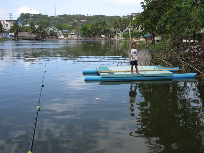В самом центре Боракая напротив Dmall я неожиданно нашел не море и не риф, а маленькое озеро, где вся рыбалка вдруг стала очень простой и почти детской. После соленой воды и пляжной суеты я с удовольствием переключился на поплавок и местных карасиков, хотя очень быстро стало понятно, что главная рыба тут вовсе не карась, а тиляпия. Она клевала почти без пауз и на все подряд, но самые приличные экземпляры, граммов по семьдесят, попадались заметно реже и лучше отзывались на дождевого червя. Самое теплое в этом эпизоде даже не размер рыбы, а то, как в него вписались местные мальчишки Алан и Диаре. Они накопали мне червей под пальмами и получили за это поплавок с грузилом, а потом мы еще долго объяснялись смесью английского, жестов и взаимного любопытства. Я показывал на пальцах, где находится Россия и что такое Москоу, а они в ответ учили меня отдельным словам на тагалоге. Именно из за таких разговоров это озеро запомнилось мне не хуже моря, потому что рыбалка там получилась не про трофеи, а про живую бытовую радость, легкий клев и ощущение, что в отпуске иногда полезно свернуть с большой воды в самый неожиданный городской угол.