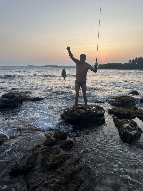 После возвращения со Шри-Ланки я понял, что мой первый короткий пост про береговую ловлю получился слишком сжатым и местами неточным, поэтому решил собрать все поправки и наблюдения в один нормальный разбор. Самое главное исправление касается снасти. Спиннинг у меня был не до восемнадцати, как я сначала написал, а до пятнадцати граммов. Брал с собой Kosadaka Brave SBRV-196L длиной 1,96 метра с тестом 3-15 граммов. Для такого берега и такого формата отдыха этого комплекта мне хватило. Тубус у меня есть, но я его с собой не брал, потому что жил в десятках метров от воды, спиннинг не разбирал и держал его в снаряженном состоянии. В чемодан, пригодный для ручной клади, он помещался без проблем. Но именно здесь вылез самый неприятный дорожный нюанс. И сам спиннинг, и коробки со снастями, и вообще все рыболовное хозяйство вызывают у служб безопасности аэропортов очень живой интерес. Меня заставляли раскрывать, распаковывать, предъявлять и фактически обещать, что чемодан поедет в багаж. Перед посадкой на борт проверяют повторно. Даже одинарный крючок в ручной клади уже становится поводом для вопросов, не говоря о зажиме, зевнике, экстракторе, ножницах и прочих инструментах. Поэтому если кто-то заматывает чемодан пленкой еще дома или до досмотра, надо понимать, что в зоне контроля вас вполне могут попросить все это вскрыть и показать вживую. По шнуру у меня тоже была поправка. Ловил я на 0,24 и при всей дешевизне претензий к нему по факту не появилось. В море он отработал честно. По катушкам у меня было две рабочие вещи. Первая это Ryobi Oasys 2000. Вторая это Mifine Tourment Ultralight Spinning Reel Light 800F. После поездки разница между ними стала для меня очень наглядной. Mifine оказалась легкой, тихой, нежной в хорошем смысле и вообще не показала страха перед морем. Ryobi была тяжелее, крутилась хуже, после соленой воды у нее стал подклинивать фрикцион, на корпусе появились царапины, а самое неприятное, у нее захлопывалась душка. Из плюсов у Ryobi только складная ручка на кнопке. Но по итогу море Mifine оказалось почти безразлично, а вот Ryobi соленую среду перенесла заметно хуже. По флюру я тоже сначала ввел людей в заблуждение. С собой у меня было несколько вариантов, но реально ловил я только на 0,45. Нож брал из тех, которые не жалко, с резиновой ручкой, и он все равно немного подржавел. С вертлюжками и карабинами история еще показателнее. Lucky John после поездки выглядел так, будто только вышел из магазина. А второй набор безымянной мелочевки умудрился заржаветь прямо в пакете. Это отличный маркер того, как море относится ко всему случайному железу. Зажим, к счастью, выжил без ржавчины. А вот ножницы после поездки уже можно было выбрасывать. Вообще ржавчина на Цейлоне кидается почти на все, что ей подходит, и это нужно держать в голове заранее. Из мелочей реально пригодились два фонарика. Совсем маленький лежал прямо среди крючков и пару раз сильно выручил. Когда я уже дома разобрал коробки, стало видно, сколько на самом деле осталось от привезенного набора. Из трех коробок в одну уместились только те приманки, которые не оторвались или хотя бы не были окончательно убиты. Силикон тоже ужался до минимума. Отдельно у меня остался лежать последний выживший погрызенный пилькер победитель. Если не путаю, это был Kosadaka Fish Darts с одним тройником с пером. Оснащал я эти железки по-разному, и стандартно, и с переносом тройни