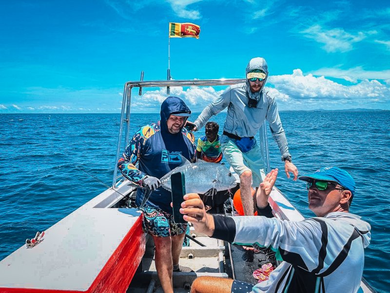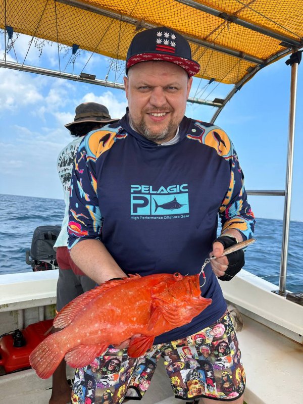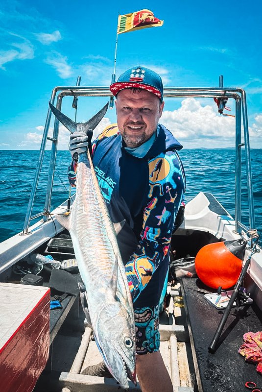 По дороге в аэропорт у меня наконец появилось время спокойно уложить в голове морскую часть этой поездки по Шри-Ланке. Перед отпуском я вообще не собирался выходить в океан. Думал, что береговой рыбалки мне, как и в прошлый приезд, будет вполне достаточно. Но сначала поступило одно предложение выйти в море, от которого было трудно отказаться, потом второе, потом третье, и в итоге именно эти выходы стали для меня одним из самых сильных кусков всей поездки. Самое забавное, что в голове у меня морская рыбалка до этого выглядела почти открыточно. Казалось, что будет яхта, музыка, расслабленный темп и что-то вроде красивой прогулки с удочками. На практике все оказалось куда честнее. Денег хватило не на яхту, а на лодку, пару ланкийцев и Пашу, и сейчас я могу сказать, что именно такой вариант и дал настоящую рыбалку, а не туристическую декорацию. Паша оказался человеком-оркестром, гидом, организатором и тем человеком, который держит весь выход в рабочем состоянии. До этого я был уверен, что самый тяжелый мой формат это бросать с берега восемьдесят граммов. Но оказалось, что часами джиговать пилькерами по сто пятьдесят-двести граммов под шри-ланкийским солнцем куда тяжелее. Через какое-то время руки просто выключаются, спина ноет, и кажется, что сил на еще один заброс уже не осталось. Но море быстро объясняет, почему ты все равно продолжаешь. Каждая поклевка, каждая пойманная рыба, каждый короткий визг фрикциона возвращали энергию почти мгновенно. Ты уже не думаешь, устал или нет, а просто снова поднимаешь снасть и работаешь дальше на автомате. Отдельная история это Пашины крики по ходу ловли. Когда он заводился и начинал орать, что под нами рыба, что она стоит в пяти метрах ото дна, что на экране идут дуги и там крупняк, все это действовало лучше любого энергетика. Я только успевал выматывать, переводить дух и снова бросать вниз в тот же слой воды, пока руки еще слушаются. В этом и был настоящий ритм выхода. Жара, тяжелое железо, короткая передышка и снова работа. На одном из фото с моря очень точно схватился весь этот бортовой хаос. Кто-то уже держит рыбу, кто-то снимает ролики, кто-то в паузе просто переводит дух, а Паша в это время скачет по лодке и каким-то образом успевает все сразу. Для меня это, наверное, и есть самое точное описание тех выходов. Я был на трех морских рыбалках, и все три дали именно то, за чем я в итоге туда и вышел. Каждый раз была рыба, были поклевки, был визг фрикциона, была та самая дикая усталость, после которой уже не хочется ни говорить, ни двигаться, и при этом было полное ощущение, что все не зря. Именно в таком сочетании и рождается тот редкий морской кайф, который потом долго держится в памяти. Эти выходы не были комфортной прогулкой и точно не были курортной картинкой. Зато они оказались живыми, рабочими и очень честными. И если одним предложением подводить итог, то Шри-Ланка в море запомнилась мне не яхтой с пивом, а лодкой, парой ланкийцев, Пашей, тяжелыми пилькерами, жарой, рыбой и благодарностью за то, что после трех таких выходов я вообще спокойно доехал до аэропорта живым и довольным.