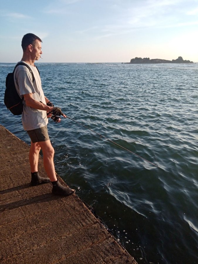 Эта поездка на Шри-Ланку вообще случилась у меня спонтанно. Билеты взяли почти в последний момент, место выбирали в основном из того, что еще оставалось перед католическим рождеством, поэтому к рыбалке я толком не готовился. Но совсем не попробовать было бы глупо, так что базовый комплект все же взял. Со мной поехали Kosadaka Brave 2,13 с тестом 10-35, катушка Daiwa Legalis 4000, шнур YGK 1.2 и китайские пилькеры в диапазоне двадцати-тридцати граммов. Место оказалось в районе Берувелы, точнее в Алутгаме. Слева Бентота впадает в океан, справа тянется риф, по которому местные в отлив бегают так бодро, будто это не скользкие камни, а асфальтированная дорожка. Ловят они там своими кривыми палками каких-то мелких рыбок сантиметров по десять. Людей со спиннингами я почти не видел, а те, кто попадался, в основном пользовались чем-то вроде самодурной оснастки. На сам риф я попробовал сунуться только один раз и быстро понял, что эта история не для меня. Ежей под ногами там как грязи, волна заметная, шанс быть смытым очень реальный. Хозяин отеля потом еще удивлялся и говорил, что в это время года такой сильной волны вроде бы и быть не должно, но мне от этого спокойнее не стало. В итоге основной своей точкой я выбрал не риф, а берег, точнее бетонную стенку между пляжами. Там получается что-то вроде небольшой лагуны, в которую рыба заходит на рассвете и на закате. Дно в основном песчаное, местами с небольшими камнями, и у меня было стойкое ощущение, что постоянно рыба там не стоит, а именно заходит короткими окнами. Из бытовых минусов место тоже быстро раскрылось. Почти каждый проходящий мимо первым делом спрашивал no fish и параллельно пытался стрельнуть сигарету. Сама рыбалка дала странный, но по-своему полезный набор результатов. Попались смешно хрюкающие караси, которых местные называют para-fish, небольшой группер, были пустые поклевки и несколько сходов. В один из вечеров село что-то поинтереснее, но продлилось это ровно три секунды. Когда я вытащил снасть, на конце шнур уже был размочален. После этого решил попробовать совсем другой вариант, взял на кухне обрезки курицы и перевязал спиннинг в донку. На эту импровизацию клюнула небольшая камбала, плюс была куча пустых поклевок. Тут я сам виноват, крючки у меня были крупноваты для такого формата. Еще один эксперимент был на закате в месте, где река впадает в океан. Там приходится стоять в воде, и сам по себе этот вариант выглядел перспективно, но у меня результата не дал. Правда, в том же месте попался европейский мужик, который уверял, что взял там тревалли килограммов на шесть, так что совсем списывать эту точку со счетов я бы не стал. В целом поездка получилась любопытной и познавательной именно в том смысле, что быстро расставила все по местам. Алутгама дала мне не красивую витринную рыбалку, а очень практичный урок про берег, волну, ежей, короткие выходы рыбы и пределы спонтанной подготовки. Если еще соберусь на Шри-Ланку, то локацию уже буду выбирать поинтереснее и готовиться к рыбалке намного основательнее. Но и этот кусок отпуска не считаю пустым. Он честно показал, что можно вытянуть даже из неидеального места, если не ждать чудес и внимательно смотреть, что именно тебе дает берег.