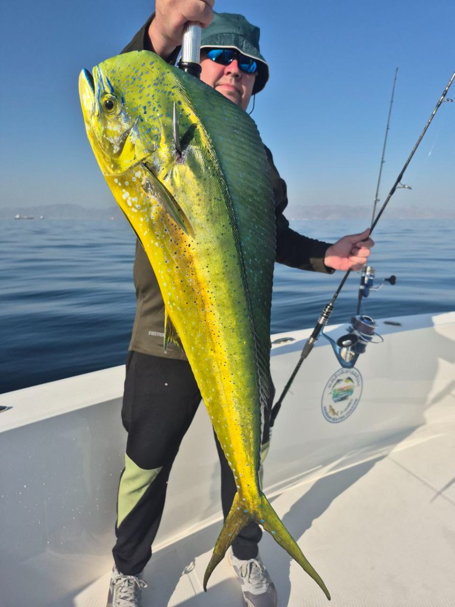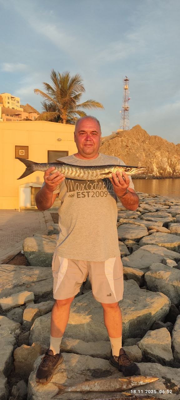 С Фуджейры я вернулся в очень правильном состоянии, когда и семья довольна отдыхом, и ты сам понимаешь, что рыбалки в поездке было не для галочки, а по-настоящему много. Жили мы в Fairmont Fujairah Beach Resort, который оказался ближайшим к Миражу, куда как раз собирался Crossman, и для меня это сразу стало не просто семейным отелем, а еще и удобной базой под береговые выходы. Практически каждое утро и каждый вечер я выбирался на буны, на ту левую сторону от яхтенных причалов, если смотреть в море. Там очень быстро познакомился еще с одним человеком с нашего форума и с местным рыболовом, а дальше уже пошел нормальный живой подбор ключа, когда место вроде бы одно и то же, а рабочая подача, темп и снасть все время требуют поправки. Начинал я с ультралайта до 5 граммов и телескопа до 20 граммов. На первый взгляд набор скромный, но по местной мелкой и средней рыбе он вполне оживал. Регулярно попадались небольшие груперы, был джейти и еще всякая некрупная морская публика, которая не дает скучать, пока ты пытаешься понять, чего именно это место ждет от тебя в конкретный час. Самым ярким береговым моментом стало утро моего отъезда, когда мы сошлись втроем со спиннингами и воблерами. Я, местный и Александр попали на выход барракуды и успели взять по одной рыбе весом примерно от 1,2 до 1,6 килограмма. Самую крупную взял Александр, мне досталась средняя, а моя по-настоящему хорошая барракуда все же сошла, но успела отыграть так, что жалко до сих пор не результат, а именно потерянную развязку. Она красиво свечила, и этого уже хватило, чтобы финальное береговое утро запомнилось не как сборы домой, а как нормальный последний шанс, который море не отдало полностью, но и не оставило пустым. Отдельно порадовало, что с берега нас никто не гонял. Более того, местный вообще предлагал ловить прямо с причалов, несмотря на знак, где рыбалка вроде бы запрещена. То есть место в этом смысле оказалось живее и свободнее, чем выглядит со стороны по первым впечатлениям. На морской выход я тоже успел сходить, и это для меня было отдельное событие, потому что раньше с катера в море я вообще не рыбачил. Вышли с участником форума kiki, познакомились вовремя, и в итоге это знакомство быстро превратилось в реальную рыбалку, а не в обычное форумное давай как-нибудь пересечемся. Рыбачили на живца, и этот формат сработал хорошо. На каждого пришлось по две махимахи, плюс хорошие сарганы, которых, по ощущениям, можно было наловить и больше, если бы ставили это отдельной задачей. При этом и здесь не обошлось без нормальной морской досады. Двух махи я упустил. Одну даже не успел увидеть, а вторую дважды подводил к лодке, видел отлично, но она на очередном рывке оборвала снасть и ушла. Такие потери на первой катерной рыбалке почему-то запоминаются не меньше, чем пойманная рыба, потому что по ним сразу понимаешь, какой запас мощности и спокойствия море вообще требует от тебя, когда все происходит не у берега, а уже в полноценном движении. Капитаном у нас был Алишер, он прекрасно говорит по-русски, и на воде с ним было спокойно именно по-человечески, без лишней суеты и без ощущения, что ты просто очередной турист на борту. В итоге у меня от Фуджейры осталось очень цельное впечатление. Семья получила свой отдых, я получил и береговую, и морскую рыбалку, познакомился с людьми, поймал свою барракуду, увидел, как красиво сходит б