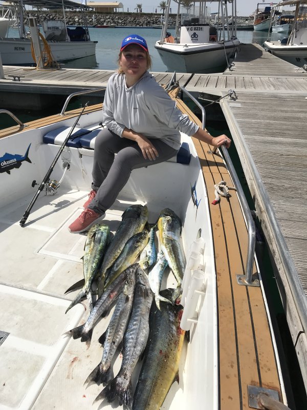 Этот выход в Фуджейре у меня начался с очень понятной задачи, с утра пошли к кораблям ловить живца, а чтобы не терять время в ожидании, сразу решили параллельно проверить барракуду. Уже со второго заброса зубатая влетела как надо, и это задало утру правильный темп. Но по-настоящему в память врезался даже не этот старт, а то, что случилось сразу после него под самым судном. Был удар чего-то очень серьезного, фрикцион был заранее настроен, все работало как должно, а итог все равно получился обидный и очень показательный. Рыба просто разогнула застежку и ушла, оставив меня стоять с совершенно дурацким ощущением, когда ты вроде бы все сделал правильно, а ответ на вопрос что именно там было уже никогда не получишь. После такого схода в голове, конечно, еще какое-то время крутились догадки, но долго зависать на них не пришлось, потому что дальше мы пошли на точку с махи-махи, и там утро резко перестало быть про сомнения. Началась та рыбалка, в которой заброс почти сразу превращается в поклевку. Кинул и есть, снова кинул и снова есть. После десятой рыбы мы уже просто перестали воспринимать каждую как отдельное событие и часть махов начали отпускать, потому что клев шел слишком плотно. Брала рыба на все подряд, и на живца, и на воблер, так что выбирать какой-то один правильный ключ уже не приходилось. Для меня важным моментом стало не только само количество поклевок, а то, что именно в этот выход Вадим Олександрович закрыл свою давнюю мечту и взял два по-настоящему трофейных хвоста. После пятнадцати минут вываживания стало особенно заметно, насколько такая морская рыба отличается по ощущениям от привычных пресноводных сравнений. В итоге домой мы вернулись даже на час раньше, потому что уже просто были переполнены этой рыбалкой. В чем-то весь день действительно напомнил мне старый августовский ритм времен работы в Абу-Даби, но здесь главное было не это воспоминание, а очень простая вещь, рыба клевала по-настоящему, и после схода под судном такой финал ощущался как полноценная компенсация за все утренние вопросы.
