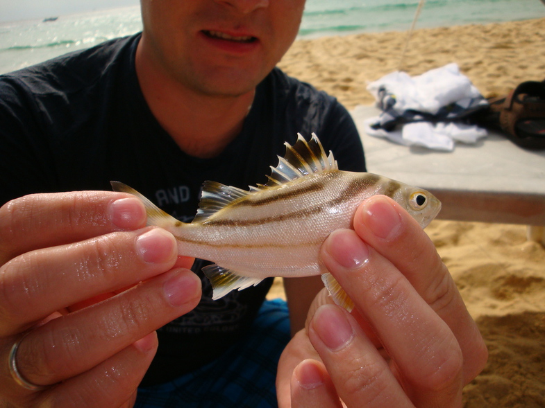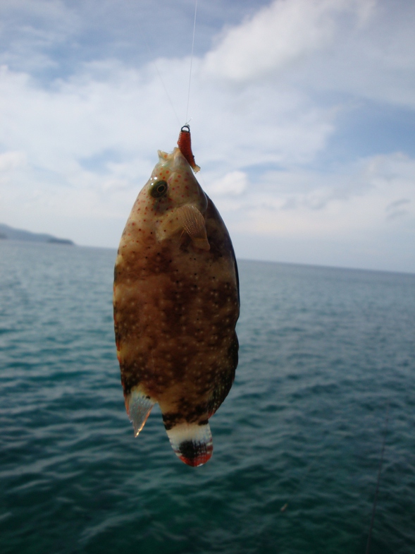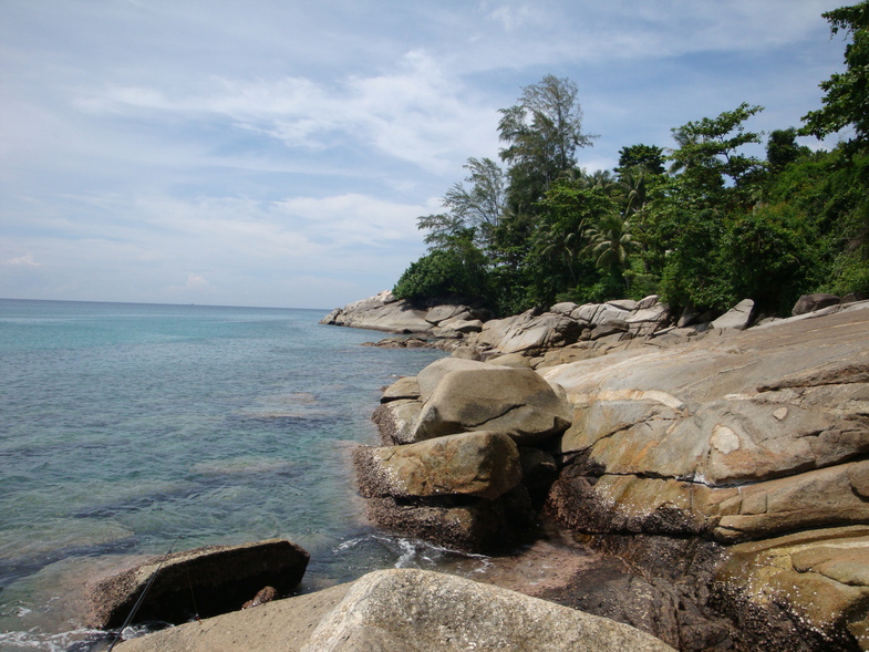 Провел неделю в Таиланде на Пхукете, на пляже Карон, и еще до вылета решил, что спиннинг в эту поездку точно поедет со мной. В первый же день отдыха мне не хотелось махать снастью перед лежаками и пугать людей на купальной полосе, поэтому я ушел на скалистый и почти безлюдный участок, похожий на каменный язык, вытянутый в море. Уже сам подход туда выглядел как отдельная часть поездки, волна бьется о камни, по плитам бегают крабы, между щелями шевелится мелкая живность, а на мокрых участках ползают рыбки, которых на обычном песчаном пляже просто не увидишь. Начал я с микроджига и уже на первом забросе трехграммового ушастика получил поклевку и первую рыбу. Дальше стало ясно, что контактов вокруг много, но почти все они заканчиваются откусанными хвостами у силикона. При этом быстро выяснилась важная вещь, покалеченный ворм менять не обязательно, потому что рыба продолжает бить его с той же охотой. Главная проблема оказалась не в отсутствии поклевок, а в том, что я взял с собой чебурашки только до пяти граммов. Под скалами глубина доходила примерно до десяти метров, вся рыба держалась у дна, а мои груза опускались в рабочий слой слишком долго. Сверху все это добивала накатывающая волна, из-за которой нормальная проводка все время сбивалась. Несмотря на это, рыба продолжала ловиться, чаще всего засекаясь в районе рта, и я успел насмотреться на очень разную прибрежную фауну. Некоторые местные обитатели выглядели так, что их и в руки брать не хотелось. Но сильнее всего меня тогда расстраивало даже не это, а очень вялое сопротивление большинства экзотических рыб. По ощущениям они почти не отличались от совсем мелкой пресноводной рыбы, и вставать на море затемно в расчете на какого-то настоящего крупняка желания у меня не появилось. Уже через несколько дней я начал лучше понимать, где именно в таких условиях есть шанс на более бодрую рыбу. Чем ближе к берегу, тем уже становилась полоса каменистого дна, и как раз на стыке камней с песком держалась совсем другая рыба, похожая на карасиков. Вот она уже сопротивлялась по-настоящему ярко, и ладошечный размер на легком Graphiteleader Veloce до семи граммов ощущался очень живо. Именно тогда у меня окончательно закрепился рабочий вывод по снасти. Самым полезным монтажом оказался отводной поводок. Он позволял быстро заглубить приманку на нужный горизонт и потом так же оперативно поднять ее над камнями, чтобы не оставлять монтаж в зацепах после каждой проводки. Когда ловля со скал окончательно уперлась в жару и невозможность нормально остыть в воде, я переключился на береговую рыбалку прямо с пляжа. Там снова лучше всего отработал отводной, хотя сплит-шот уступал ему совсем немного. Сначала я по привычке заходил в воду по грудь и старался забросить как можно дальше, но довольно быстро понял, что при почти полном отсутствии рельефа это не самое правильное решение. Намного интереснее работала прибрежная волна буквально под ногами. Она поднимала песчаную муть, вокруг которой крутилась вся местная мелочь, причем отдыхающие этому почти не мешали. Чем сильнее волна, тем увереннее был клев. Рабочей стала очень простая схема, короткий заброс прямо под берег, медленная равномерная проводка и паузы. Чаще всего попадалась небольшая рыба, похожая на окунька, но периодически влетали и другие виды. С воблерами у меня в эту п