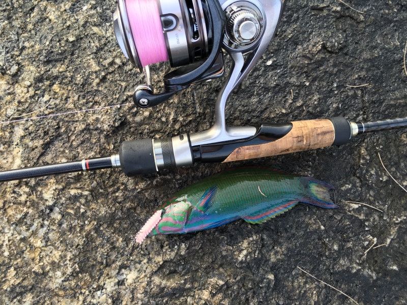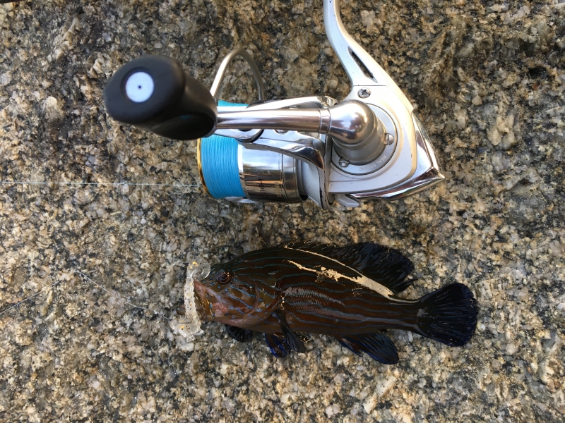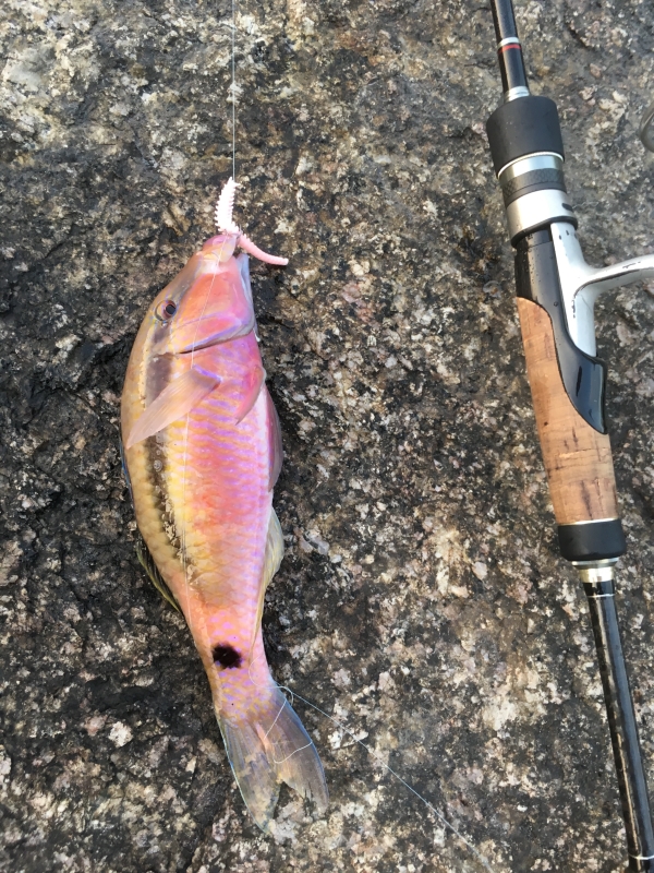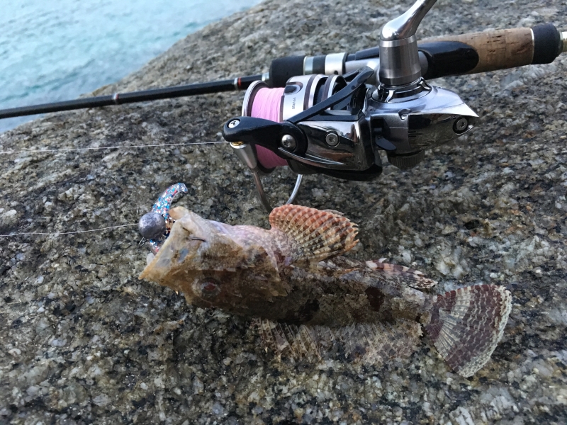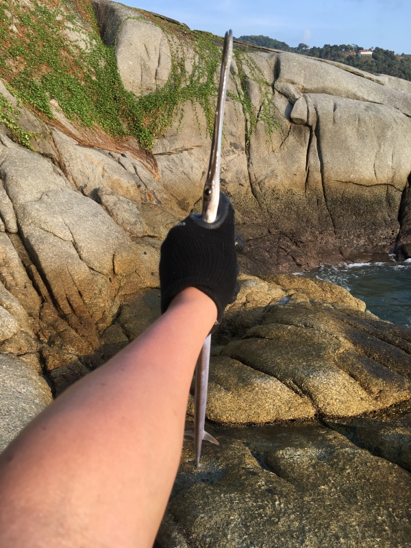 Во вторую семейную поездку на Пхукет я приехал уже совсем с другим настроем, чем в первый раз. В прошлый отпуск я тоже брал с собой тревел-спиннинг и набор приманок, которые тогда казались мне вполне разумными для моря, но тот первый заход оказался скорее пробой пера. При этом именно он и зацепил меня сильнее всего. Первую настоящую рокфишевую поклевку я помню до сих пор как очень злой и резкий удар, который по эмоции легко даст фору многим серьезным пресноводным рыбам. После той поездки стало ясно, что в следующий раз я не хочу ехать наугад. Я довольно подробно перелопатил тему морской береговой рыбалки, пересмотрел и перечитал все, до чего дотянулся, и в этот выезд подошел уже как человек, который хочет не просто потыкать приманкой в воду, а реально разобраться в вопросе. В итоге вместо одного тревела я повез с собой уже два полноразмерных спиннинга, Finessa Neo и K.G. Lights, обе палки до десяти граммов, одна с tubular-вершинкой и более универсальная, вторая с solid-вершинкой прежде всего под джиг. Вез их отдельно в тубусе, благо мы ехали втроем и проблем с багажом не было. Тубус доехал туда и обратно без приключений, а разницу между тревелом и нормальной палкой я на месте почувствовал сразу. Это действительно небо и земля, и если есть возможность везти полноценный комплект, она того стоит. Если с удилищами к поездке я уже более или менее определился, то с приманками все оказалось намного сложнее. Морская мелочевка и снасти заняли у меня в итоге чуть ли не половину чемодана, и честно говоря даже за две недели времени на вдумчивый разбор всего арсенала не хватило. Семейный отдых все-таки оставался семейным, и жена довольно быстро начала ворчать, что каждое утро и каждый вечер я провожу на камнях. Но именно благодаря этой перегруженной подготовке мне удалось понять, что реально работает, а что только кажется обязательным на берегу дома. Из силикона я взял с собой прежде всего Marukyu Power Isome, тот самый морской червь. По этой резине вывод у меня получился очень четкий. Размер меньше L брать смысла не вижу. Даже на этот размер спокойно садится очень мелкая рыба, а запас живучести уже хоть какой-то есть. Расход у Marukyu на море большой, но при этом за две недели непрерывной ловли я израсходовал всего две пачки, так что тащить с собой коробку нет никакой нужды. Для меня этот червь стал прежде всего поисковой приманкой. Им удобно быстро понять, где сейчас стоит рыба, а дальше уже можно переходить на более живучие аджинговые стики, которые местные зубастики так быстро не разрушают. По цветам у меня были почти все варианты, но в реальной ловле работали в основном красный и особенно розовый. Все остальное так и осталось лежать запечатанным до следующих выездов. Хорошо проявили себя и морские серии от Hayabusa, Tict и Ecogear Aji Must. Эта резина заметно лучше переносила местные зубы. У Hayabusa еще и флюоресцентная серия оказалась очень кстати в темное время, когда по пелагике требовался более заметный силуэт. Хорошо зашел и Bugsy от Bait Breath, особенно тот цвет, который когда-то уже выручал меня на Кипре, куда я по неопытности притащил массу приманок, на которые морскую рыбу поймать было просто нечем. Отдельным открытием еще по прошлой поездке для меня остались обычные пресноводные твистеры Action Plastics. На джиге это просто убийца скорпены и группера, и в этот раз история полностью повторилась. Работал