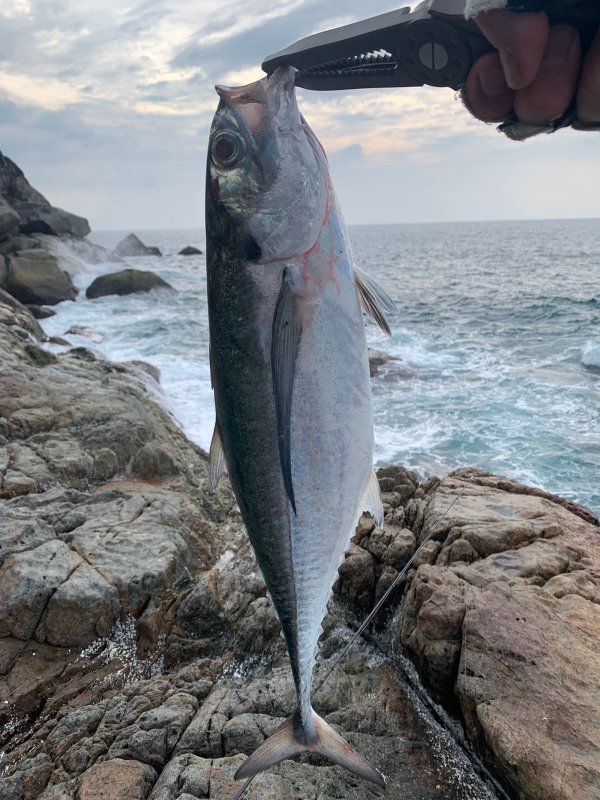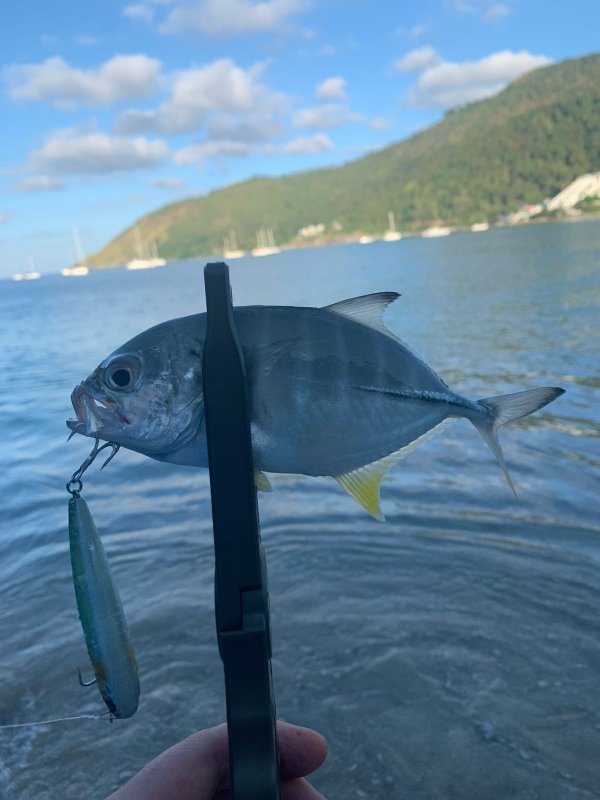 На Пхукете я к тому моменту прожил уже месяц, так что успел насмотреться и на берег, и на местную рыбу, и на то, как здесь в реальности работают разные способы ловли. Для себя я довольно быстро определил границы. На резину и воблеры по кораллам я почти не тратил время, хотя под ногами там жизнь кипела и всякой мелкой и странной морской рыбы в камнях было предостаточно. Я отлично понимаю, что если целенаправленно ковыряться в таких местах, без рыбы действительно не останешься, но лично мне хотелось не просто вымучивать поимки среди камней, а искать более злую и быструю рыбу. Сначала я немного пробовал topwater на песке в расчете на сибасса, но по факту нашел только микро GT и саргана. Честно говоря, в этот сценарий я и не упирался слишком долго, потому что довольно быстро понял, что мой интерес в этот раз лежит совсем в другой плоскости. Некоторое время я еще уделил кальмару. Даже собрал под это отдельный комплект и красиво его прокачал, но очень быстро остыл. Прибрежный кальмар на Пхукете оказался слишком мелким, а сама ловля не зацепила. При этом мне запомнилось, что сколько бы я ни стоял на камнях, я почти не видел местных с металджигом. Почти все вокруг были заточены именно под кальмара, и это только сильнее подтолкнуло меня упереться в свою тему. Для себя я окончательно выбрал металджиг. По моим ощущениям это один из самых добычливых и одновременно самых интересных способов ловли в соленой воде, пусть и довольно требовательный к снастям. Бросать нужно далеко, по-хорошему сотню метров и дальше, а лучше вообще работать с запасом. Основных комплектов у меня было два, один до шестидесяти граммов и второй до тридцати. И под них же довольно быстро сформировались две главные рыбы, ради которых я вообще выходил на берег. Первая это Torpedo scad. По размеру она обычно не производит впечатление монстра, килограмм или два, но по факту это очень злой и собранный боец, с которым всегда приятно иметь дело. Главная проблема в том, что окно у нее крошечное. Иногда весь выход укладывался в двадцать или тридцать минут, и если ты не оказался в нужном месте ровно в этот момент, то просто пролетаешь мимо. Вторая моя старая любовь это King mackerel. Средний размер у берега у меня выходил примерно два или три килограмма, самая крупная на тот момент была около пяти, хотя на рынке я видел экземпляры совсем другого масштаба. Надежды на то, что такие рыбы реально подойдут к берегу, конечно, минимальные, но сам шанс все равно заставляет идти снова. По характеру она не такая жесткая, как torpedo scad, зато почти каждое вываживание дарит несколько очень бодрых забегов метров по пятнадцать или двадцать, и этого уже хватает, чтобы выход запомнился. Проблема здесь снова во времени. Выходы у king mackerel тоже недолгие, но самое неприятное даже не это, а то, что чаще всего они происходили тогда, когда лично мне на камнях находиться было тяжелее всего. Не на рассвете и не ночью, а днем, когда в тени под тридцать три, а на самих камнях и без ветра вообще становится очень жестко. Плюс до многих точек еще нужно дойти через джунгли, гору или каменный хаос, и иногда это реально превращается в полноценный поход до рыбы. Именно поэтому у меня и осталось ощущение, что эта рыба постоянно не дается легко. Она ловится, но каждый раз требует какого-то отдельного усилия. Отдельной строкой для меня шла Queenfish, то есть лихия. Она у 