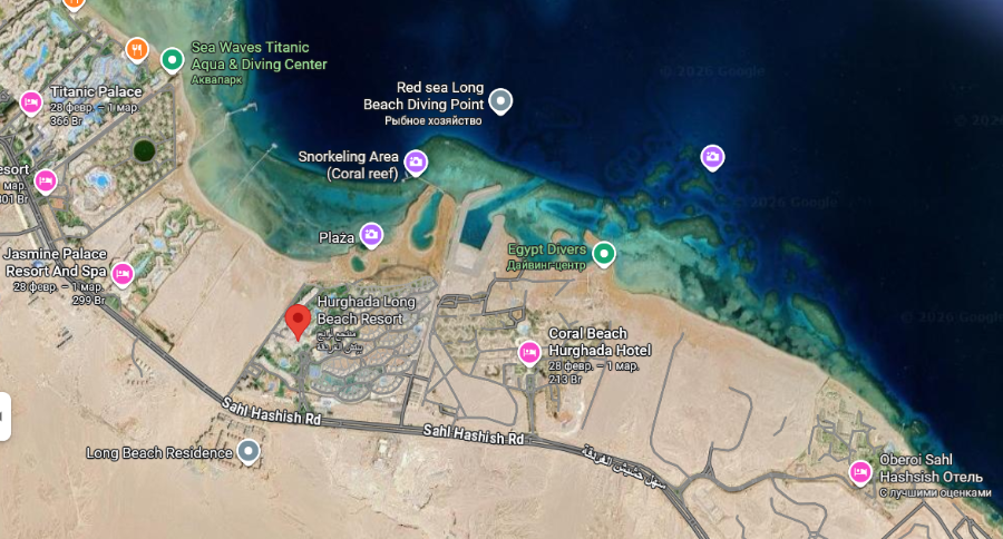 Здесь source совсем короткий, но он нормальный и его не надо раздувать в выдуманный отчет с якобы пойманной рыбой. Автор просто пишет, что по воле случая окажется в Hurghada Long Beach Resort с тринадцатого по двадцать третье марта и собирается взять с собой спиннинг, чтобы на месте попробовать половить прибрежную коралловую мелочь. Дальше у него идет именно полезная полевая прикидка по карте, а не эмоции после удачного выхода. Он отмечает, что слева между его отелем и Jasmine есть небольшой дикий пляж. Справа, между Long Beach и Coral Beach, он тоже видит небольшой свободный участок. А если пройти дальше за Coral Beach, то между ним и Oberoi Sahl Hashsish на карте уже получается большой дикий пляж. То есть сам смысл поста не в результате, а в разведке трех потенциальных береговых окон еще до начала поездки. В финале автор честно формулирует только намерение. Он рассчитывает, что где-то на этих участках удастся хотя бы помочить пилькеры и воблеры. Для меня это и есть правильный центр текста. Не успешная рыбалка, которой в source еще нет, а спокойная предварительная оценка береговых мест в Хургаде перед мартовским отпуском со спиннингом.
