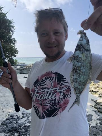 Этот source для меня важен тем, что он совсем не похож на короткую отпускную открытку с набором красивых названий. Здесь чувствуется живая длинная история, в которой автор буквально встраивает серьезную морскую рыбалку в семейный отдых на локальном мальдивском острове Fulhadhoo. Начинается все резко и по-северному контрастно. Еще 1 января 2020 года он с друзьями ловит окуня в Заболотье в ХМАО, домой возвращается только вечером 4 января, а уже 5 января в 19.30 летит с женой и сыном к Индийскому океану. Этот переход из зимней континентальной рыбалки в тропический океанский режим сам по себе задает тон всему отчету. Дальше важно и место действия. Это не частный резорт и не формат дорогой морской витрины, а локальный остров с обычной жизнью, местными законами и всеми сопутствующими ограничениями, включая сухой режим без алкоголя. Автор отдельно проговаривает разницу между локальными островами и резортами, объясняет, что гестхаусы на таких островах значительно доступнее по цене, и называет конкретный Three Hearts Guest House, где семья живет в трехместном номере с трехразовым питанием. Эта бытовая и логистическая часть не лишняя, потому что весь дальнейший рыболовный сюжет держится именно на том, что он не уехал на специализированную яхтенную программу, а пробует собрать настоящую рыбалку внутри нормального семейного отпуска. Прошлый год уже дал ему представление о местной воде, но тогда все сводилось к аборигенским рыбалкам-экскурсиям, где ловят руками на толстую леску и получают просто какой-то набор океанской рыбы. В этот раз цель совсем другая. Автор сознательно хочет уйти от формата экскурсии к нормальной спиннинговой ловле с прицелом на поппинг и джиггинг, причем троллинг он прямо не любит и поэтому не рассматривает как главный вариант. Под этот план он везет с собой три разных комплекта. Первый это Hearty Rise Jig Force II 842XH с тестом 20-100 граммов и усиленный Twin 4000 для поппинга. Второй это старый Salmo Taifun Boat длиной 2.4 метра с тестом 100-200 граммов вместе с карповой катушкой Wichwood 6500 под джиггинг. Третий это CD Rods Extrasence Nano 3-14 граммов с Biomaster 2500S для рокфишинга. Отдельно упоминается плетенка 4PE. Уже в этом куске source есть важное настроение. Человек не пишет, будто приехал готовым чемпионом, а наоборот честно показывает попытку собрать разумный универсальный набор под разные местные сценарии. Дальше будет видно, насколько океан быстро объяснит ему пределы такой подготовки. Первая же стыковка с реальностью случается в Мале. У автора всего 25 минут на покупку приманок, и продавец выдает ему два поппера по 150 миллиметров весом 54 грамма, два стикбейта длиной 135 миллиметров и весом 58 граммов и пару воблеров 150 размера с небольшим заглублением. То есть уже здесь чувствуется компромисс. Он покупает не то, что долго и вдумчиво выбирал, а то, что успел схватить в ограниченном окне. На остров семья добирается к 15.00, успевает поесть, выйти к морю и лечь спать. Но в 5 утра следующего дня автор уже на песчаной косе с Хартиком в руках. И вот этот первый выход, наверное, один из самых честных и полезных кусков всего отчета. На десятом забросе поппера следует жесткая поклевка, спиннинг в дугу, фрикцион визжит, и кто-то совершенно неостановимый просто идет по своим делам. Автор не может остановить рыбу, его 140 метров плетни тают на шпуле на глазах, он пробует притормаживать рукой и получает обрыв. Н