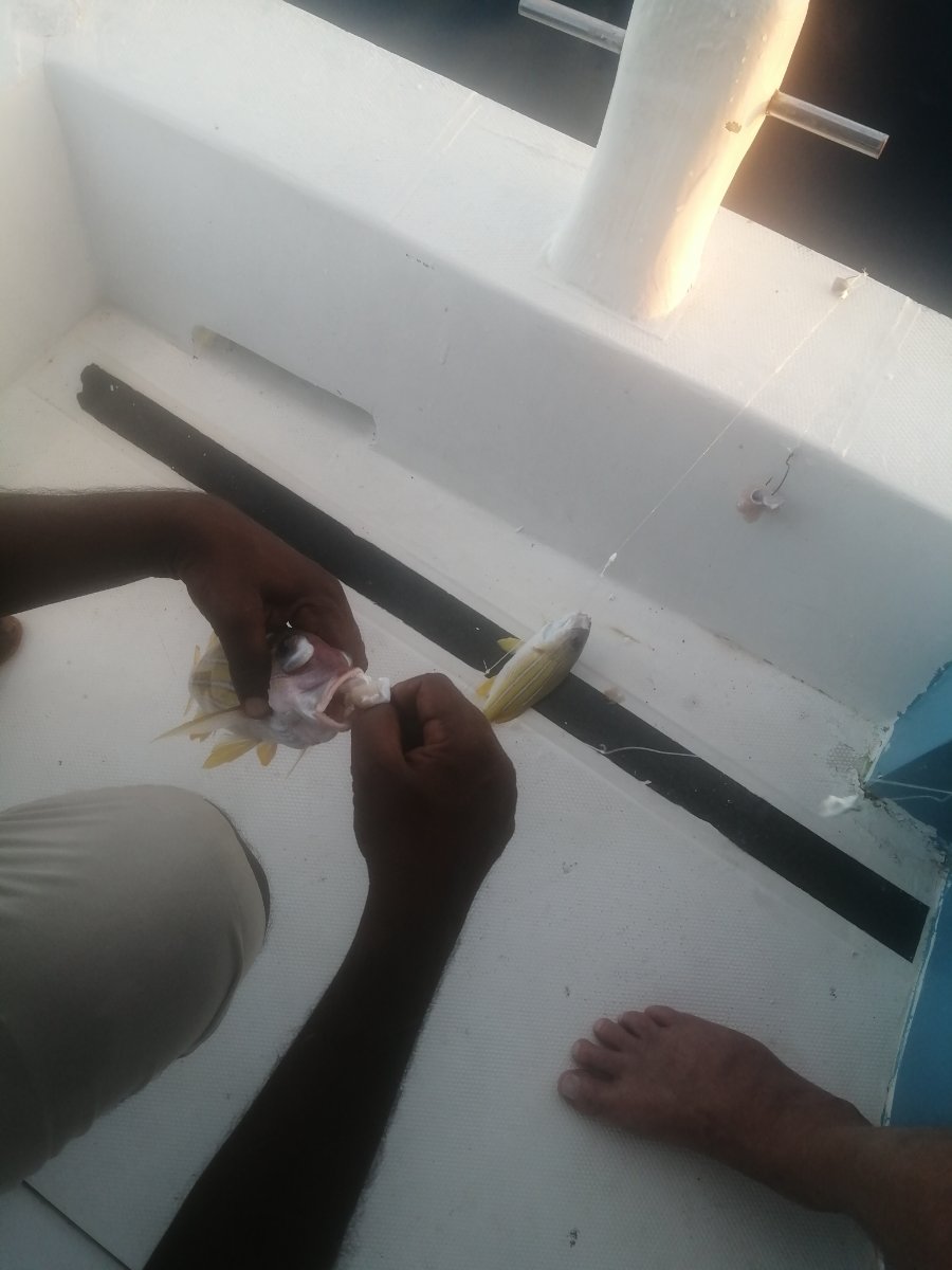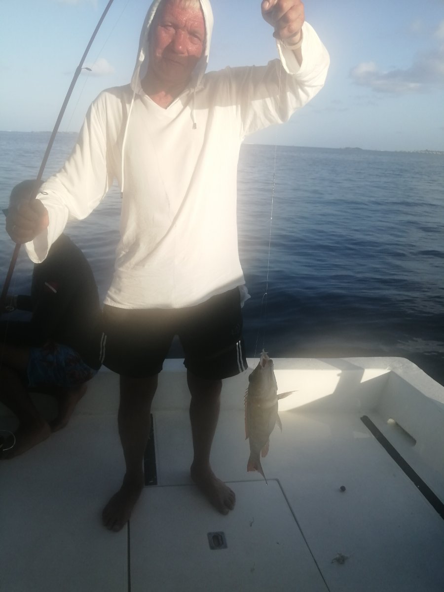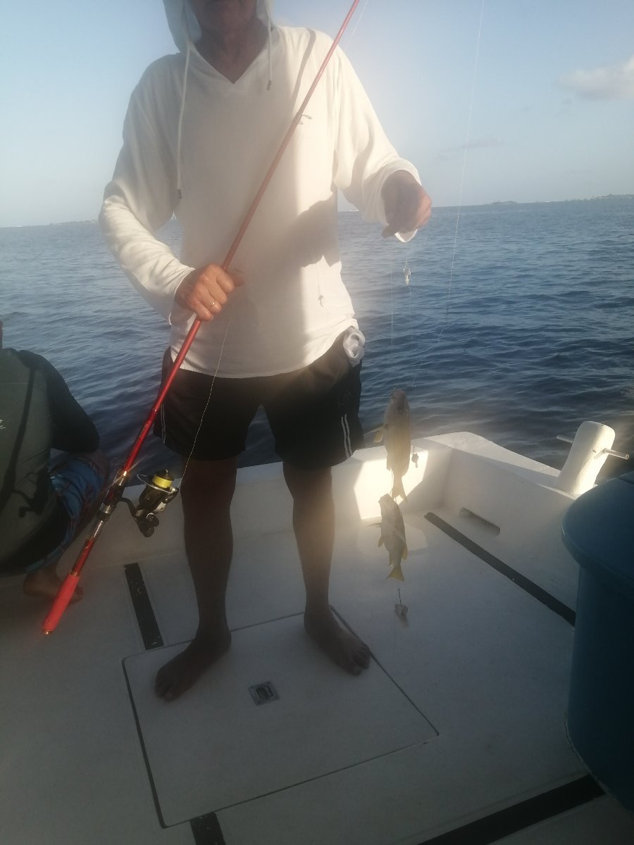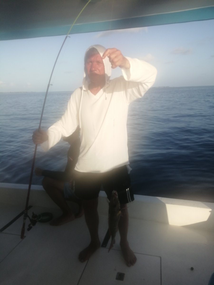 Этот source собран не как чистый рыболовный отчет, а как большой отпускной отзыв про Fihalhohi Maldives, и именно поэтому во втором проходе для меня было важно отделить то, что действительно относится к рыбалке, от обычного гостиничного и бытового фона. Но совсем вырезать вступление тоже нельзя, потому что рыбалка здесь работает именно как часть короткого мальдивского отдыха, а не как отдельная экспедиция на серьезной яхте. Автор отдыхал на Фихалхохи с 30 сентября по 5 октября 2025 года. До рыболовной части он успевает описать кривой старт дороги, потерянные в Шардже часы, сломанный в Мале чемодан, тяжелый переезд на катере и общее ощущение, что начало поездки складывается не слишком гладко. Это важный эмоциональный фон, потому что дальше остров резко переворачивает настроение. Уже по прибытии автор понимает, что само место ему очень нравится. Но для нас главным становится не подробный обзор номеров и баров, а то, что отдых не убил старую привычку таскать с собой пусть и простую, но свою снасть. Он прямо пишет, что всегда берет с собой дешевый телескопический спиннинг и недорогую катушку. Причина очень практичная. Телескоп влезает в чемодан, недорогую палку не жалко в самолете, а катушка в соленой воде в любом случае работает в режиме расходника. Это не геройство и не попытка выдать бюджетную снасть за идеальную. Наоборот, в source чувствуется прагматичный подход человека, который лучше возьмет компромиссный комплект, чем останется на тропическом острове вообще без удочки. Главная рыбалка на острове вечерняя и организованная. На нее нужно записываться заранее на ресепшене, причем сам подходишь к стенду, пишешь номер комнаты и количество человек. Если набирается хотя бы четыре желающих, группу везут. Они прилетели в понедельник, а уже на вторник по плану стояла первая такая рыбалка. Набралось восемь человек, то есть полный комплект. В 16.00 группу собрали у дайв-центра, провели короткий инструктаж и повели на катер. Дальше начинается самый содержательный для нас кусок source. Катер идет примерно на шесть километров на северо-восток и встает с подветренной стороны подводного рифа. Якорь бросают на меляке, а ветер оттягивает лодку в нужную сторону, на свал к рабочей глубине. Уже в этом описании видно, что местные работают не наугад. Лодку ставят так, чтобы снасти оказывались в зоне, где риф обрывается и где рыба держится не случайно, а по рельефу. Всем раздают местные снасти. Это катушки с леской толщиной примерно миллиметр, груз-оливка около восьмидесяти граммов и ниже крупный прямой крючок, похожий по размеру на то, что у нас могут поставить на судака, только без офсетной формы. В качестве насадки выносят ведро резаной рыбы. Автор не просто слепо копирует то, что ему дают, а сразу пытается встроить в эту схему свой опыт. Он просит метр местной лески и собирает оснастку по их мотивам, но под себя. Сначала и на первой, и на второй постановке у него одна и та же проблема. На глубине метров двадцать кто-то постоянно щиплет насадку, поклевки чувствуются, а реализации нет. Более того, на крупном крючке после каждой такой атаки остается почти одна шкурка от наживки. То есть рыба есть, контакт есть, а результат не приходит. Это очень полезная для нас деталь, потому что она показывает, как на такой туристической рыбалке даже простая донка начинает требовать тонкой подстр