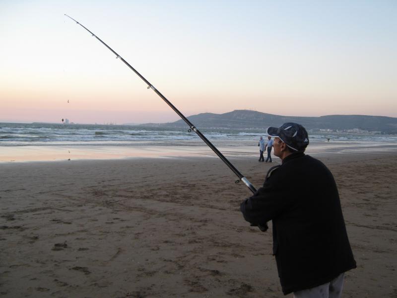 Эта поездка в Агадир изначально была рабочей, а не отпускной, но рыбалку я все равно сразу попытался встроить в график. Место прибытия было понятным: атлантическое побережье, где хотелось проверить хотя бы береговой вариант. Морскую рыбалку по приезде мне довольно быстро отменили как не сезонную историю, на которую сейчас не стоит тратить ни время, ни деньги, так что весь план сразу пришлось свести к берегу. Снасти я привез с собой заранее: длинный спиннинг-дубину около 3,5 метра с тестом 100-200 граммов, карповую катушку 4000, леску 0,33 и набор грузов с крючками. По тем редким источникам, что удалось найти до поездки, я только приблизительно понимал местную схему ловли, поэтому первым делом просто стал смотреть, что делают местные рыбаки у отельного пляжа. Около шести вечера удалось пообщаться с ними на смеси французского, арабского и английского, подсмотреть оснастку и расспросить про наживку. В ходу у них оказались креветка, трубчатый червь, кусочки кальмара и рыбная требуха. Уже после работы я вернулся на берег поздно, примерно в одиннадцать вечера, и начал с того, что было под рукой: насаживал мясо и рыбу. На этом этапе главной проблемой оказалась не снасть и не выбор места, а сами условия. Волна была около полутора метров, дул сильный ветер, и по кончику было почти невозможно понять, где настоящая поклевка, а где просто очередной удар воды. Единственным понятным сигналом стали пустые крючки: именно по ним стало ясно, что затея не совсем безнадежна и кто-то наживку все же снимает. Дальше помог уже местный рыбак, который одолжил немного мяса кальмара. Именно на эту наживку и удалось поймать первых рыб. В этой короткой истории для меня важен не сам счет улова, а очень приземленный, честный вход в незнакомую береговую рыбалку. Не через красивую легенду про Атлантику и трофеи, а через работу после рабочего дня, разговоры с местными, подбор понятной наживки и очень грубое чтение поклевки по пустым крючкам в темноте, на ветру и на волне.