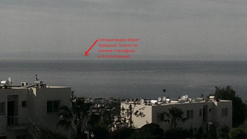 Шторм уходит, на горизонте виден берег Турции, район Мерсина. До Кипра километров девяносто. Не ругайте снимок - телефон.