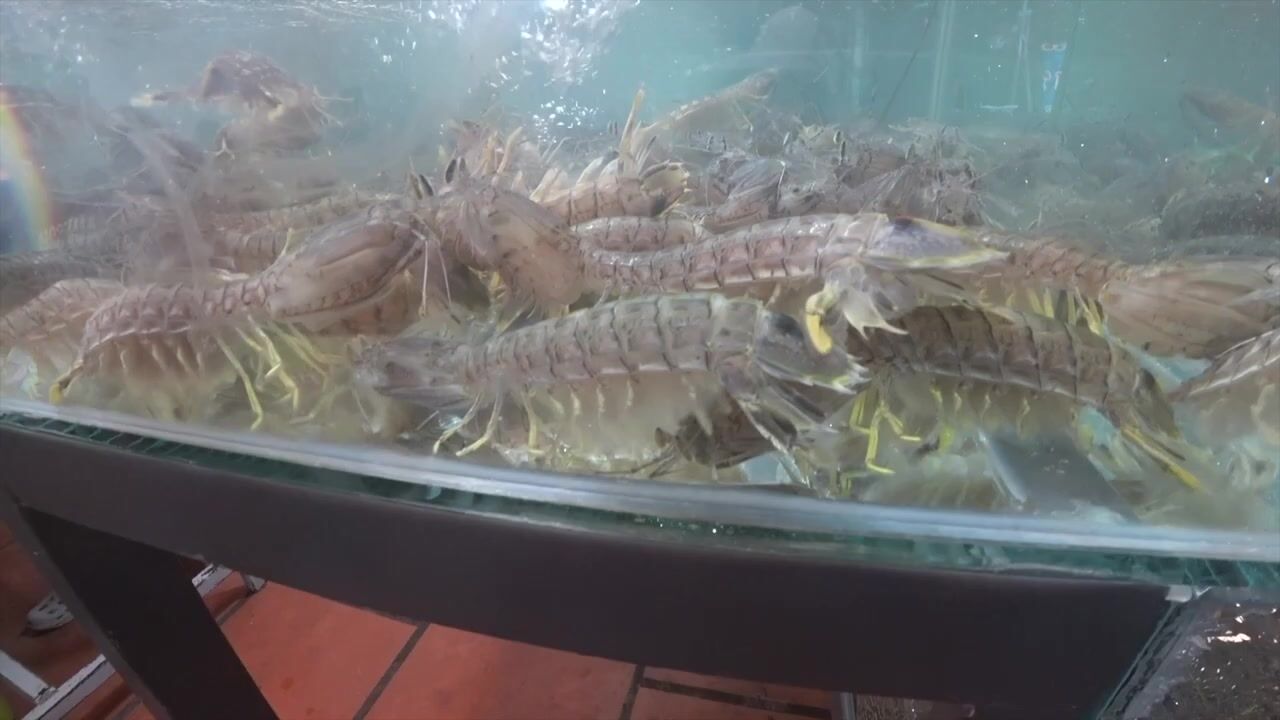 Пляж лобстеров в Cam Ranh Вьетнам, свежие морепродукты и лодки возвращаются с ночной рыбалки
