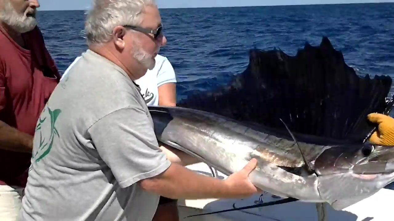 Isla Mujeres морская рыбалка парусник в прыжке и накал вываживания