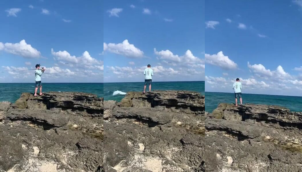 Caribbean shore, ловля с камней у Playa del Carmen и волна к вечеру