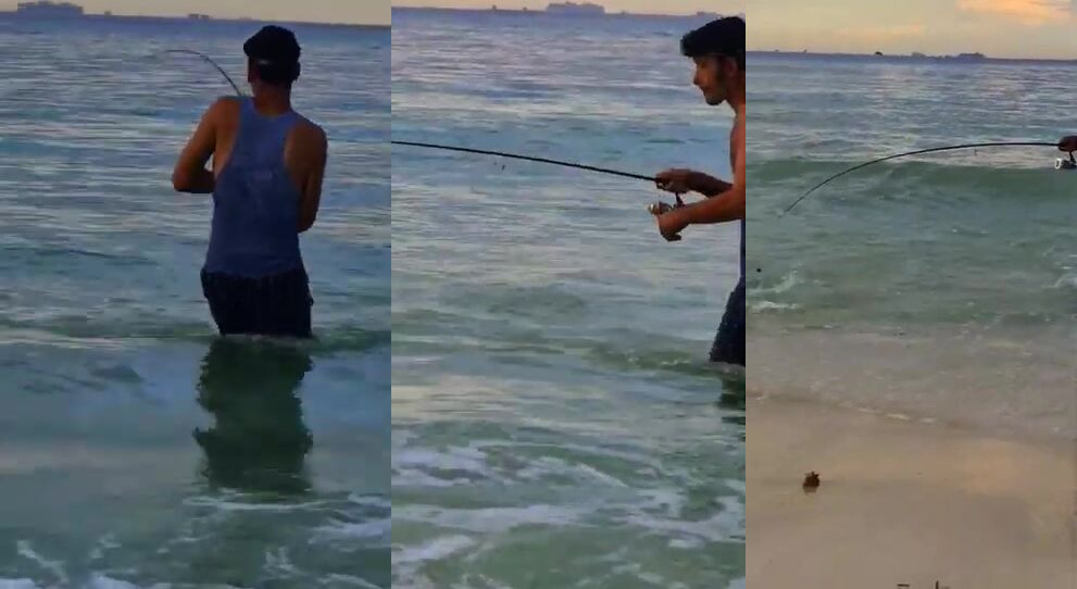 Мексика морская рыбалка на Playa del Carmen с берега без глубокой оснастки