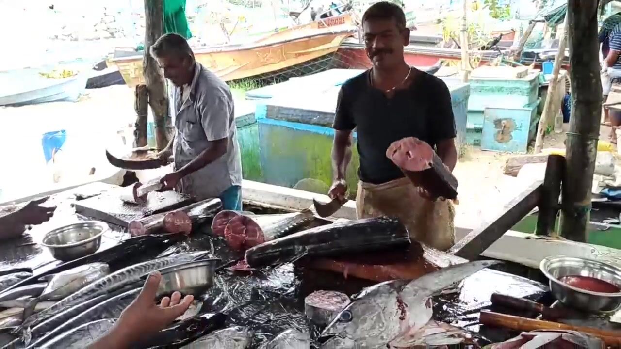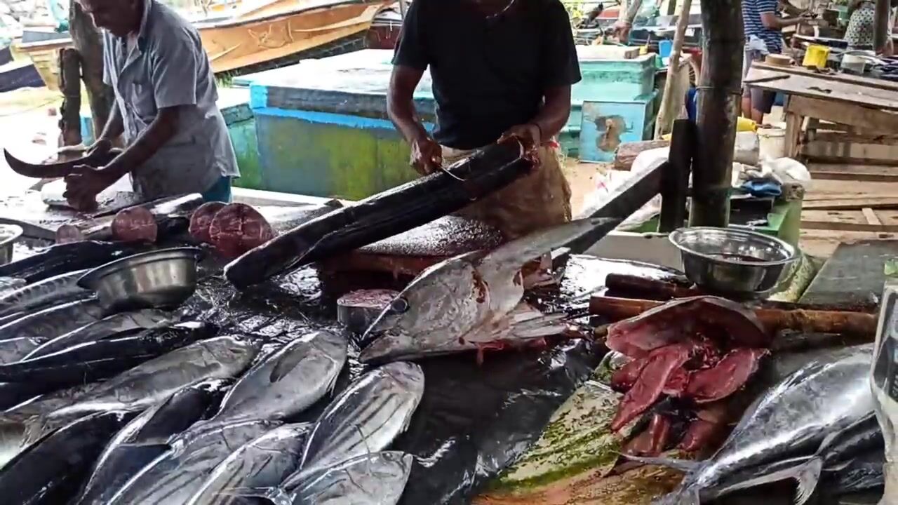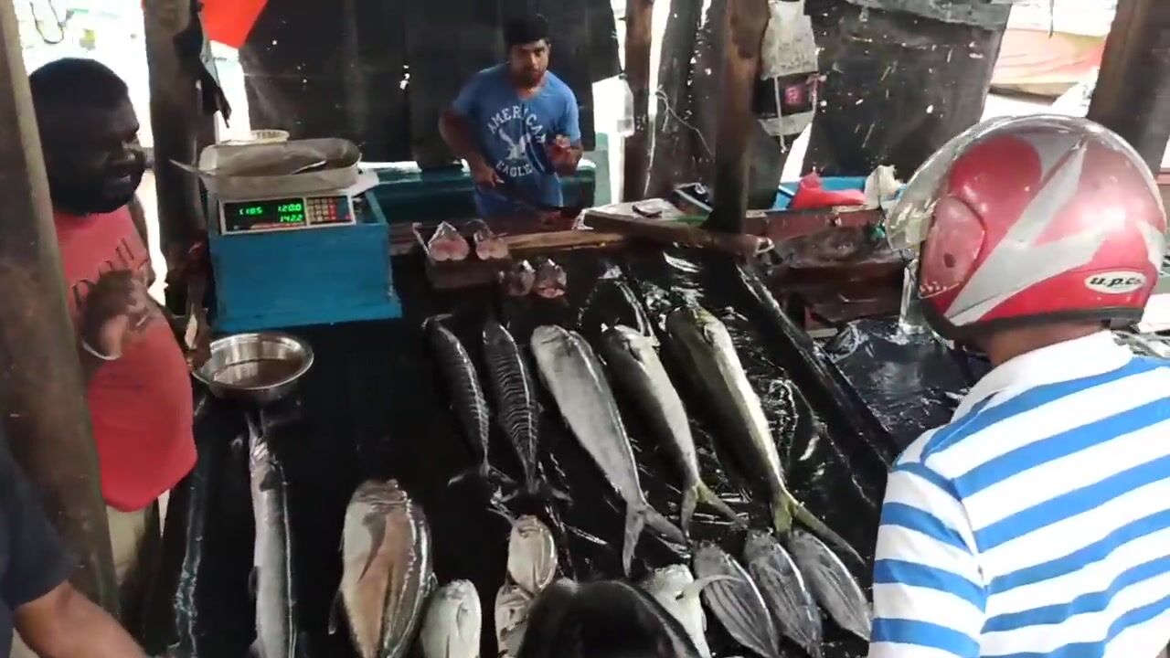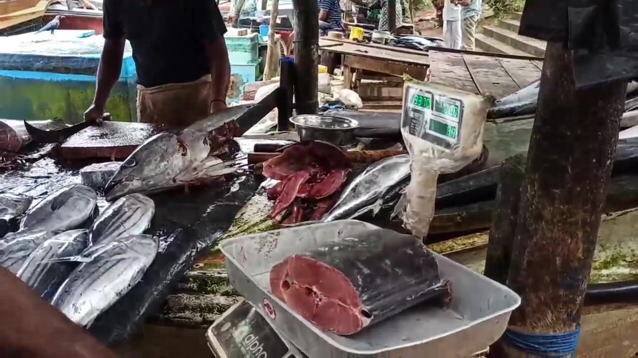 Галле, рыбный рынок у воды. Столы в льду, рыба рядами - нож у продавца летает, чистит и рубит на стейки. Кожу снимают отдельно, похоже пойдет в суп. Цена в рупиях за три с чем-то кило вышла норм, торга почти нет. Жир блестит, мякоть плотная, спорим, какой кусок лучше для жарки. Мне как рыбаку рынок полезен - видно что привезли лодки, значит понятно, чем народ ловит и что сейчас по сезону. После такого руки сами тянутся на пирс - вечер проверить.