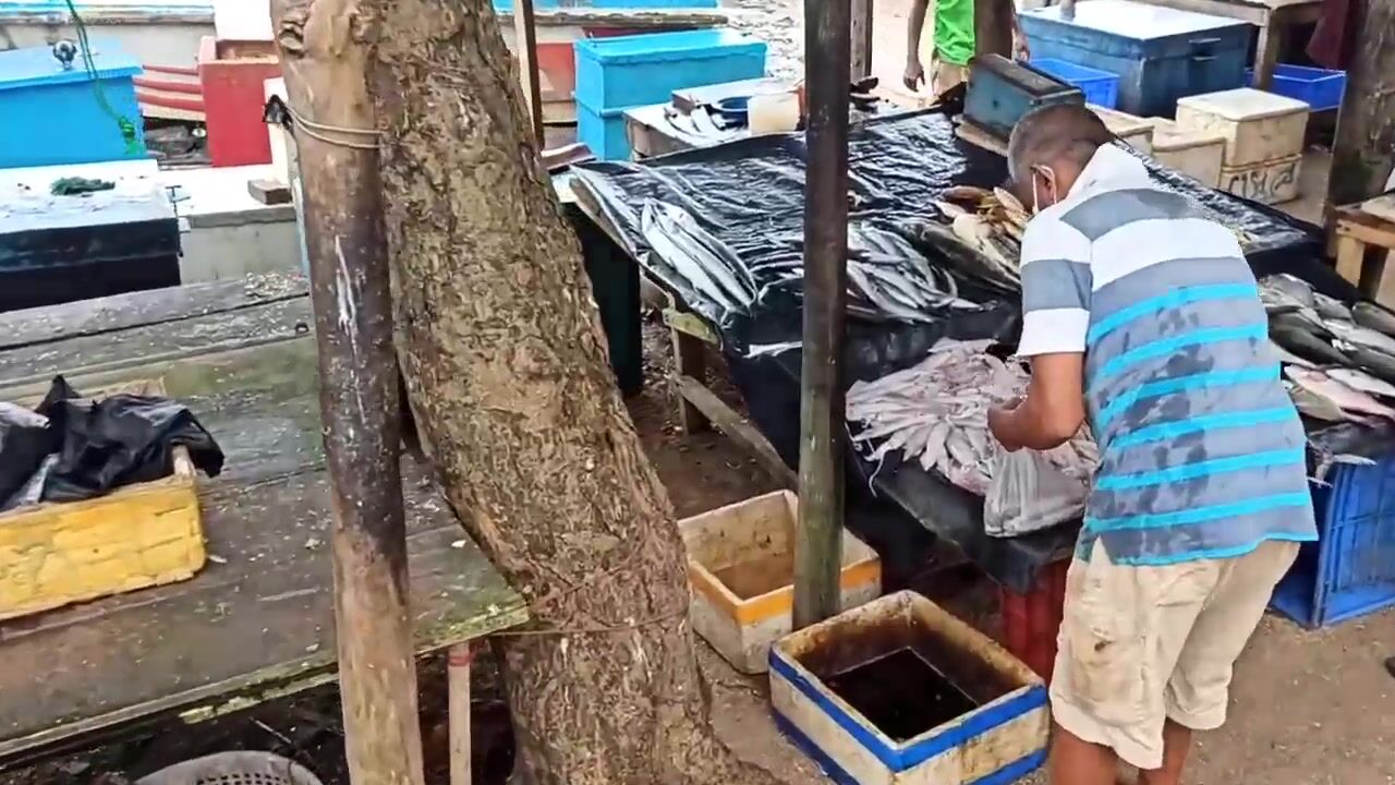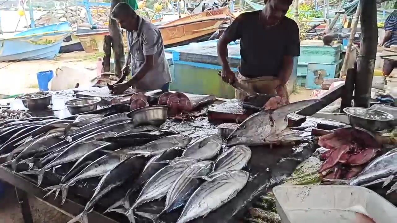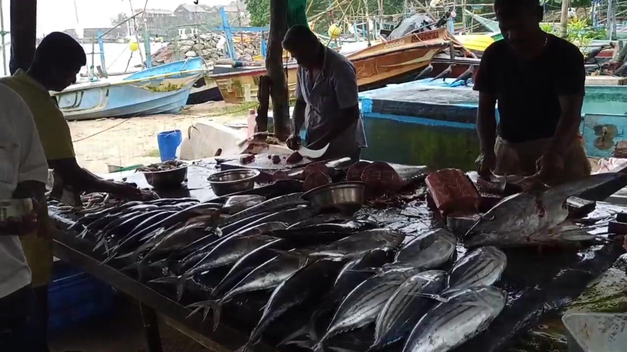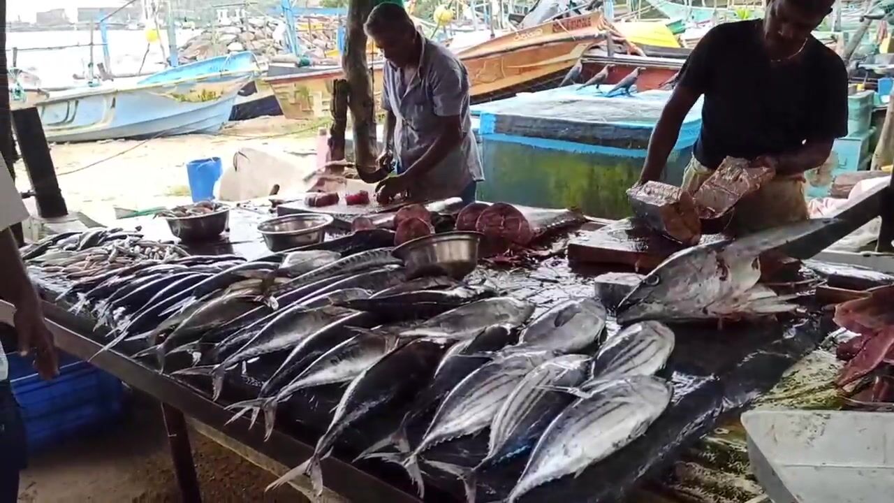 Галле, рыбный рынок у воды. Столы в льду, рыба рядами - нож у продавца летает, чистит и рубит на стейки. Кожу снимают отдельно, похоже пойдет в суп. Цена в рупиях за три с чем-то кило вышла норм, торга почти нет. Жир блестит, мякоть плотная, спорим, какой кусок лучше для жарки. Мне как рыбаку рынок полезен - видно что привезли лодки, значит понятно, чем народ ловит и что сейчас по сезону. После такого руки сами тянутся на пирс - вечер проверить.