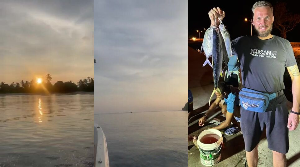 Скорая помощь на Thoddoo, Мальдивы и вечерняя рыбалка у пирса маленького островного посёлка