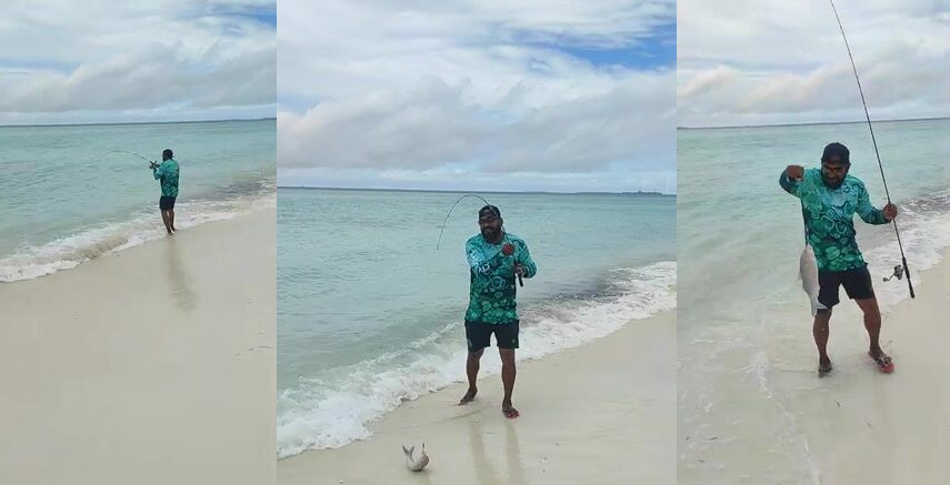 Beach cast at Alif Dhaalu Dhigurah - морская рыбалка в канале у пасса