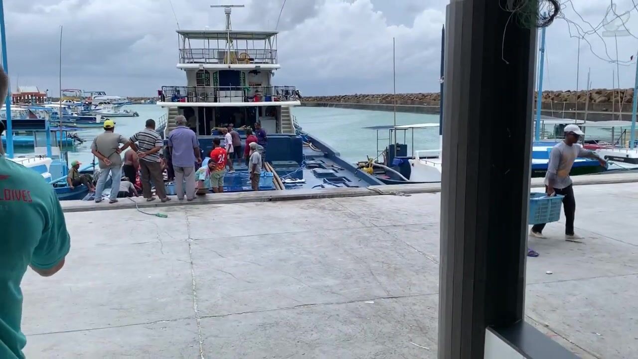 Скорая помощь на Thoddoo, Мальдивы и вечерняя рыбалка у пирса маленького островного посёлка
