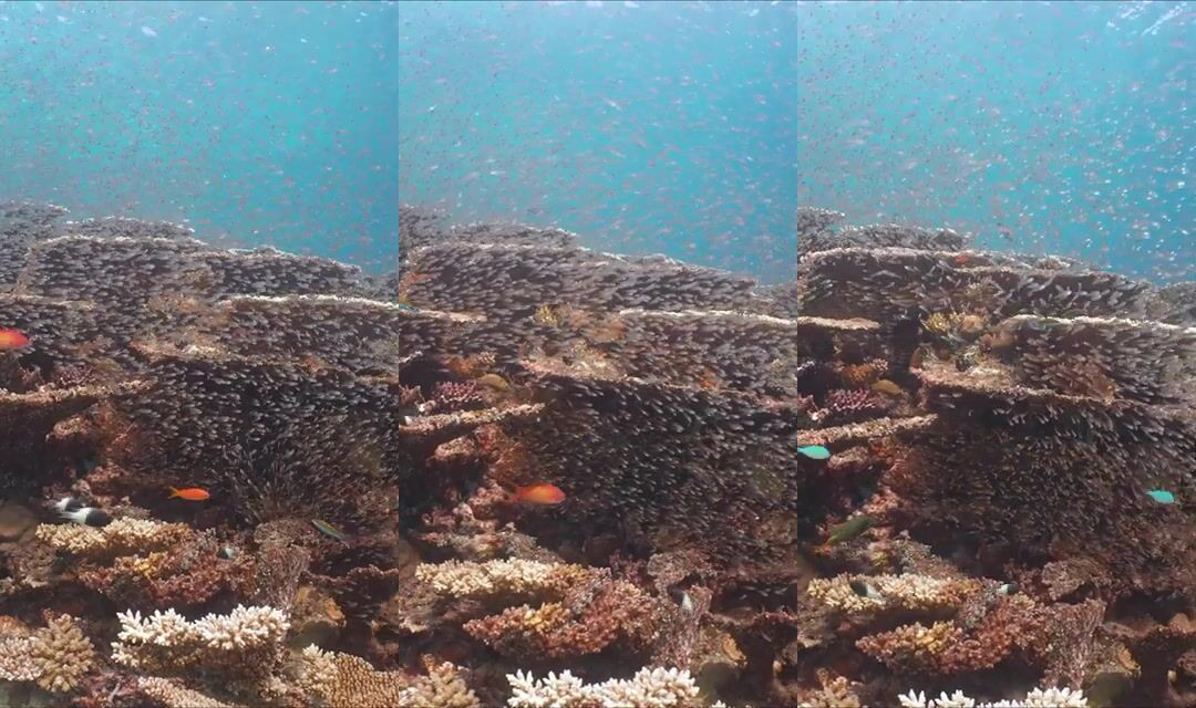 Meemu Atoll: стая над рифом и стеклянная вода для снорка