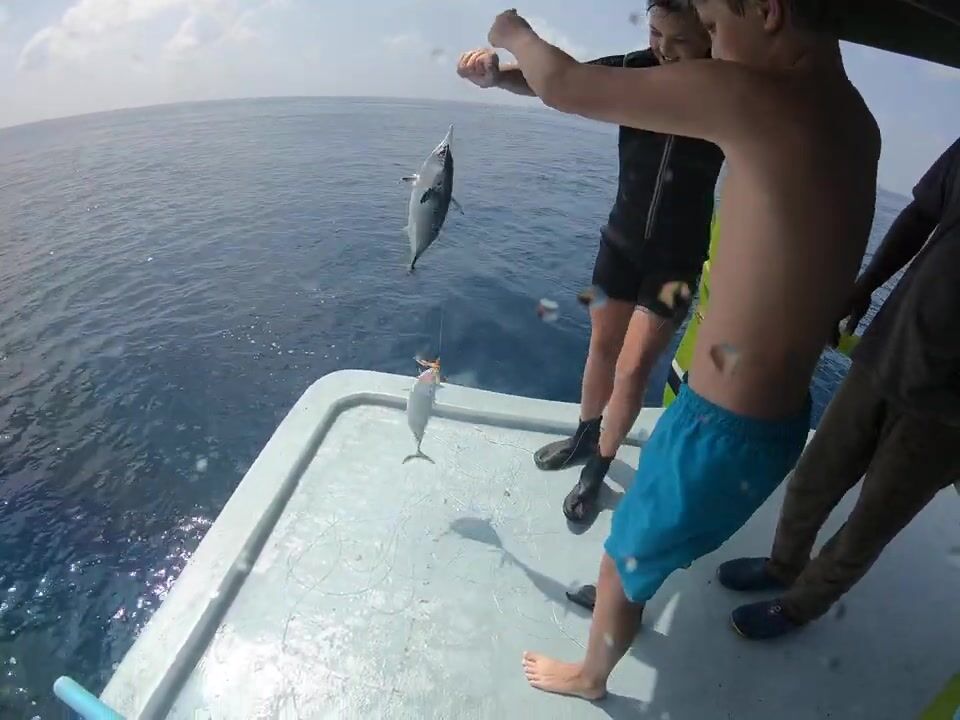 Морская рыбалка на Мальдивах - поймали большую вкусную рыбу прямо у домашнего рифа острова