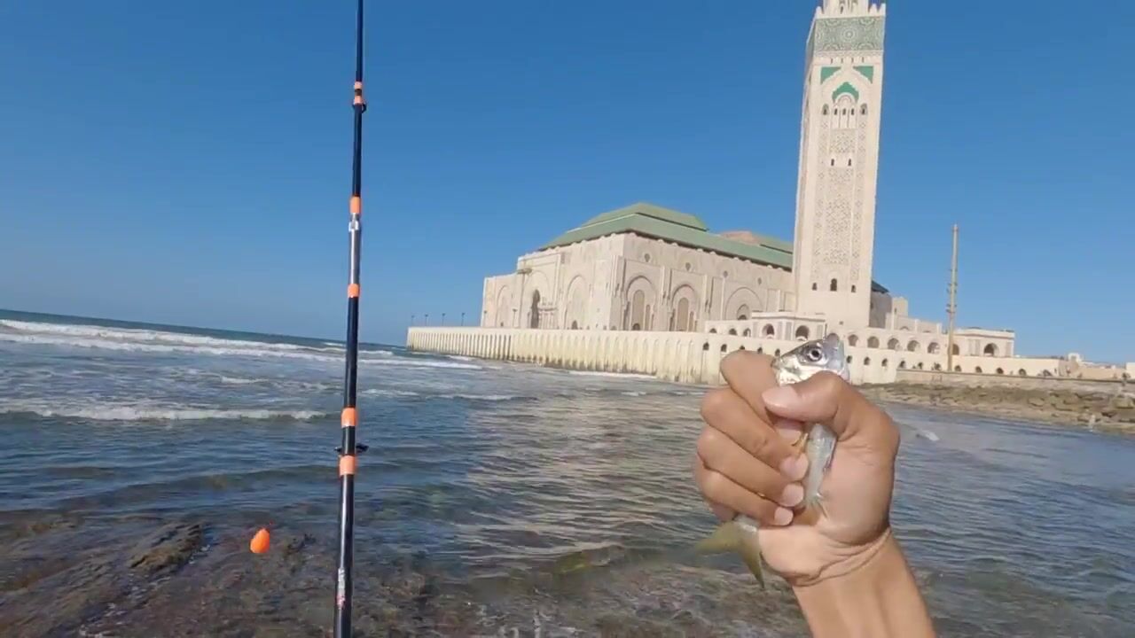 Casablanca - рыбалка у пляжа рядом с мечетью Хассана II