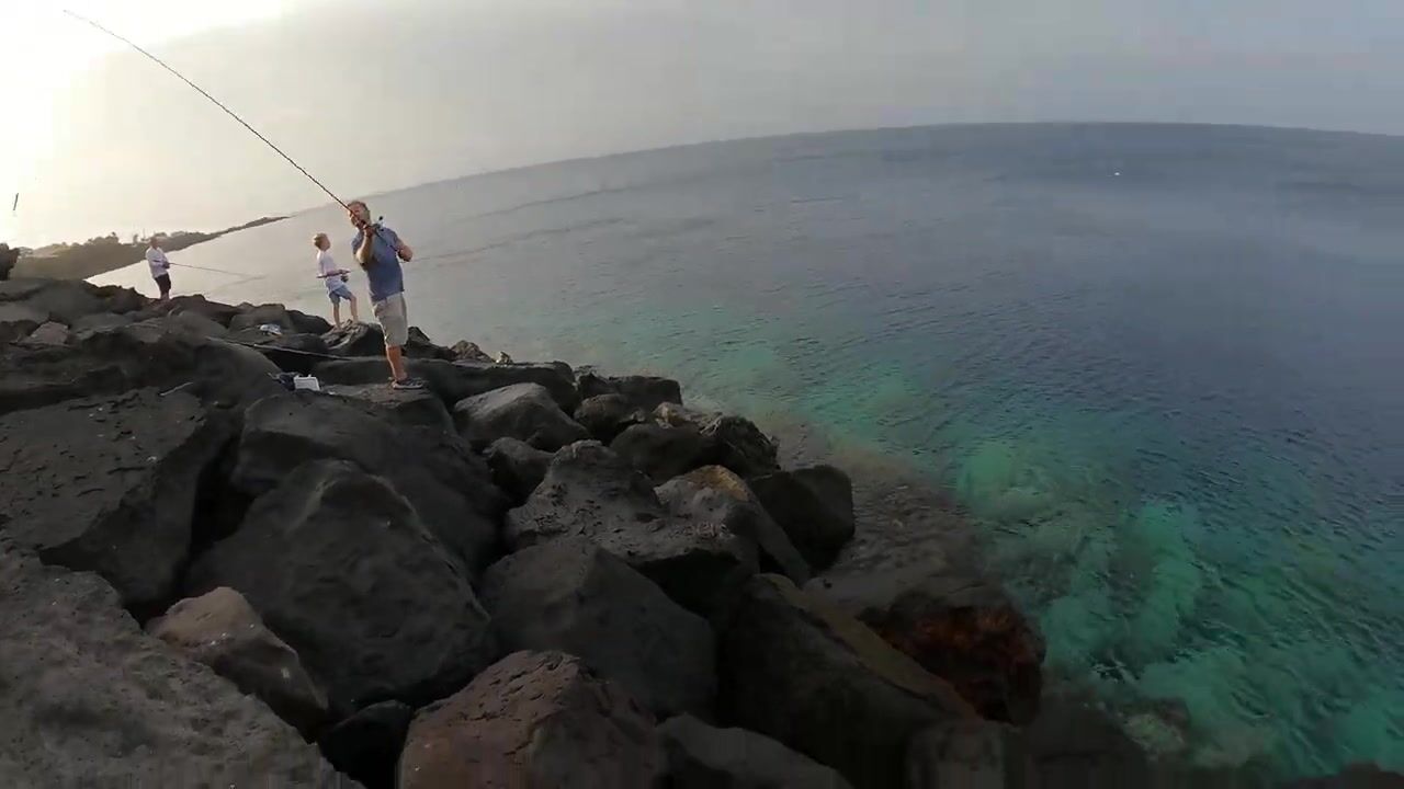 Playa Blanca, Lanzarote - утро на пляже и рыбалка у волнореза