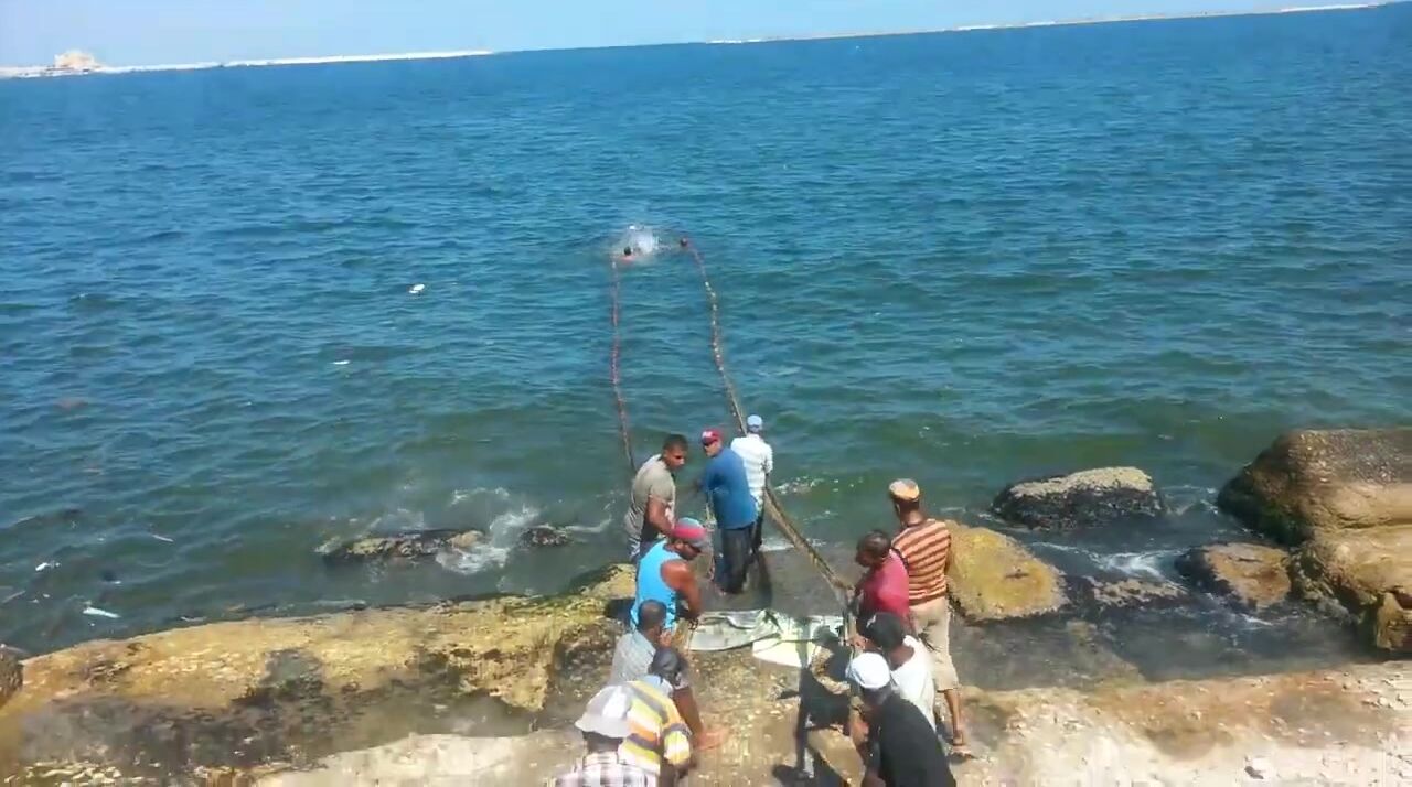 Нелегальная ловля сетью в центре Александрии, Египет / Fishing by fishnet in Alexandria