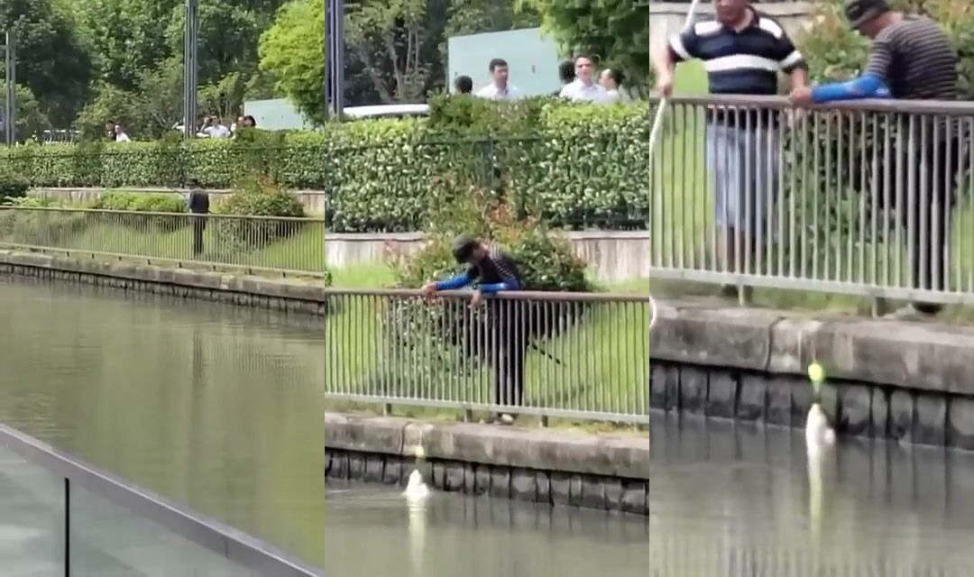 7 апреля Шанхай мужчина поймал большую рыбу и отпустил ее потому что внутри только икра