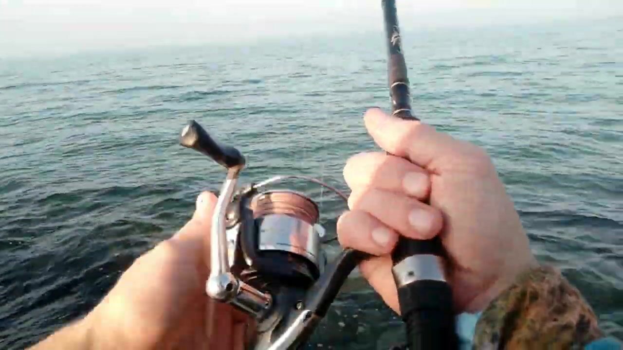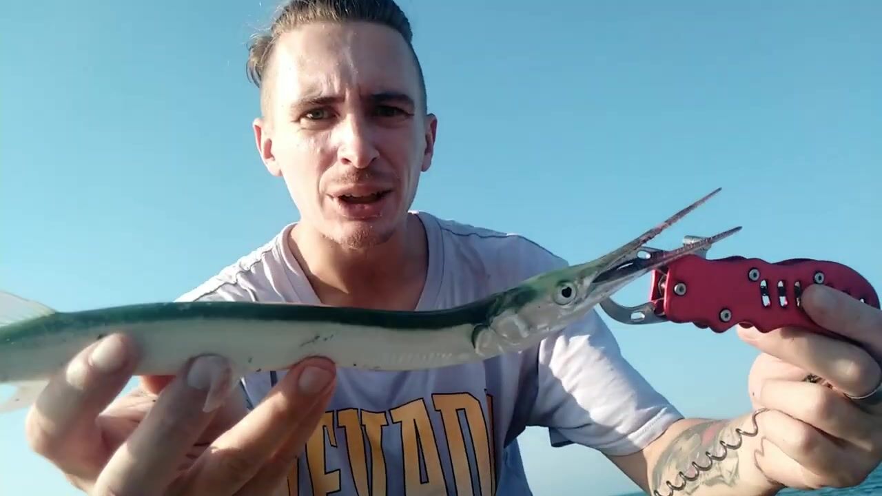 05:00, рассвет на западном берегу. Старт с вертушки, первый квинфиш мелкий, отпущен. Второй чуть крупнее, тоже домой в воду. Первый сарган выходит под валом, недомер. Меняю снасть на «хитрую» с маленькими крючками и опушкой, пробиваю слой глубже из-за волны. Сарган берёт снизу, удивляет. Ветер и зыбь мешают, но по видам день сложился, доволен.