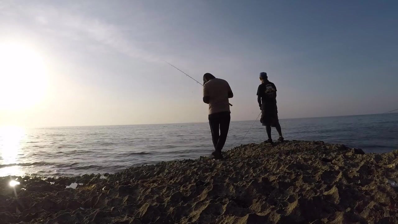 Fishing at Raysut Beach Salalah спокойная береговая рыбалка на фоне портовых кранов и кораблей