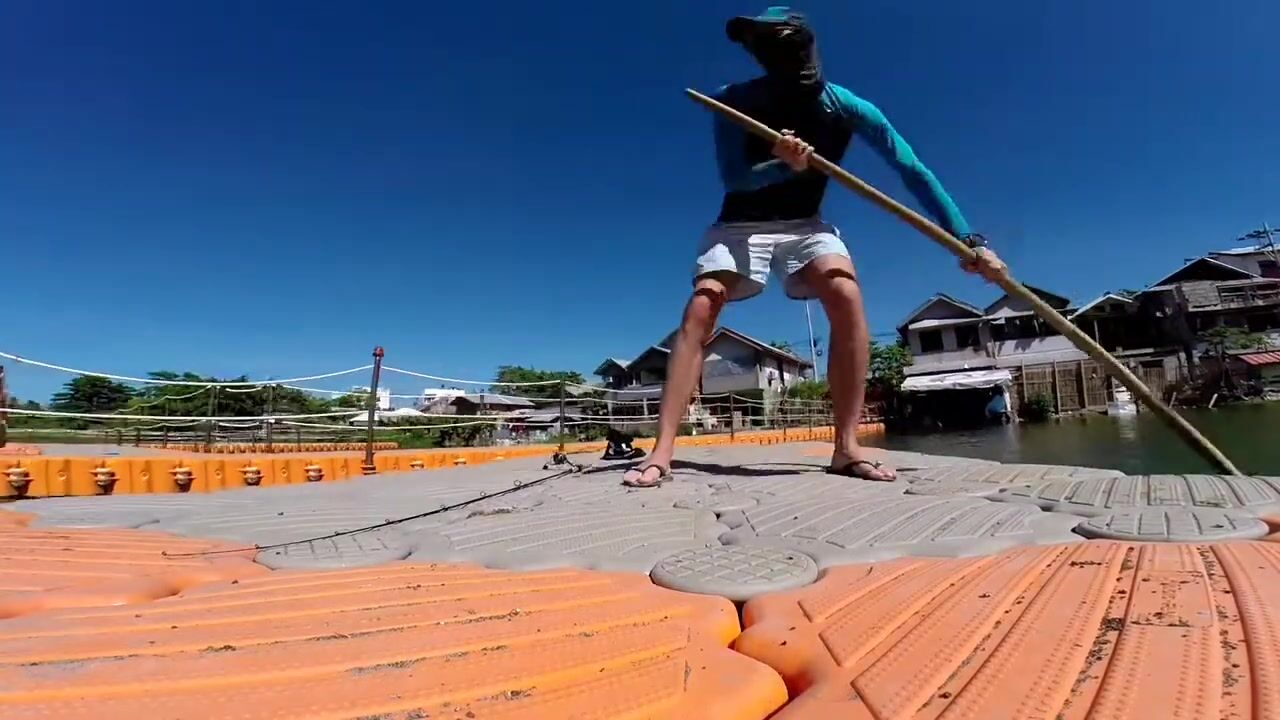 Воблер крутится, улова нет. Беру болотце, местные кивают: рыба бывает. Ставлю джиг 1 г с зелёным «червячком», клюёт врезку, но коряг много, приманки летят. Дали плотик, ползу тихо, аккуратно. Совет от ребят: приходи на рассвете или к закату. Взял местный ром, двигаем дальше ))