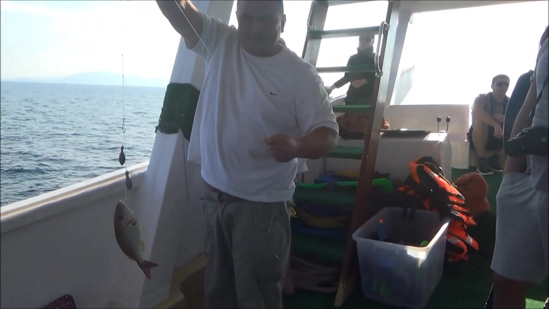 Вышли в море около 7 утра - море спокойное, солнце уже жарит. Дали снасти - спиннинг, леска 0.40, крючки острые как иглы. Приманка свежая сардина. Сын сначала боялся, но потом поймал свою первую рыбу - маленький тунец килограмма на два! Я словила дорадо - золотая, блестящая, прям праздник. Капитан помог снять рыбу и сразу положил в лед.