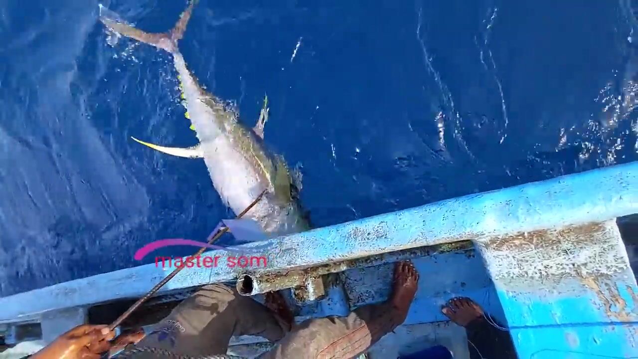 Желтоперый тунец техника ловли handline и морская битва на крючке в открытом океане