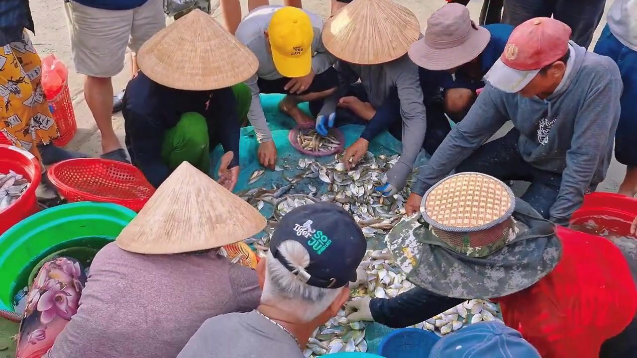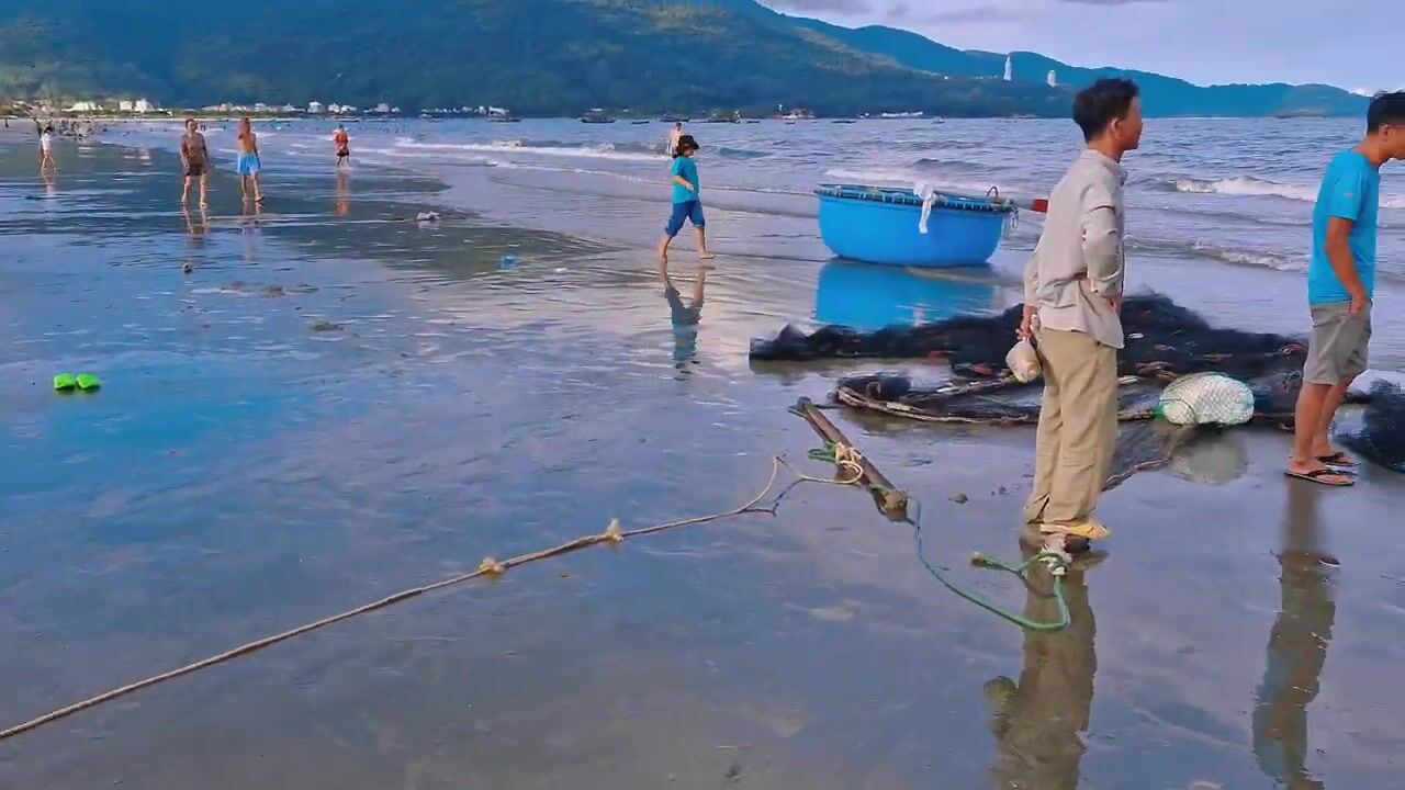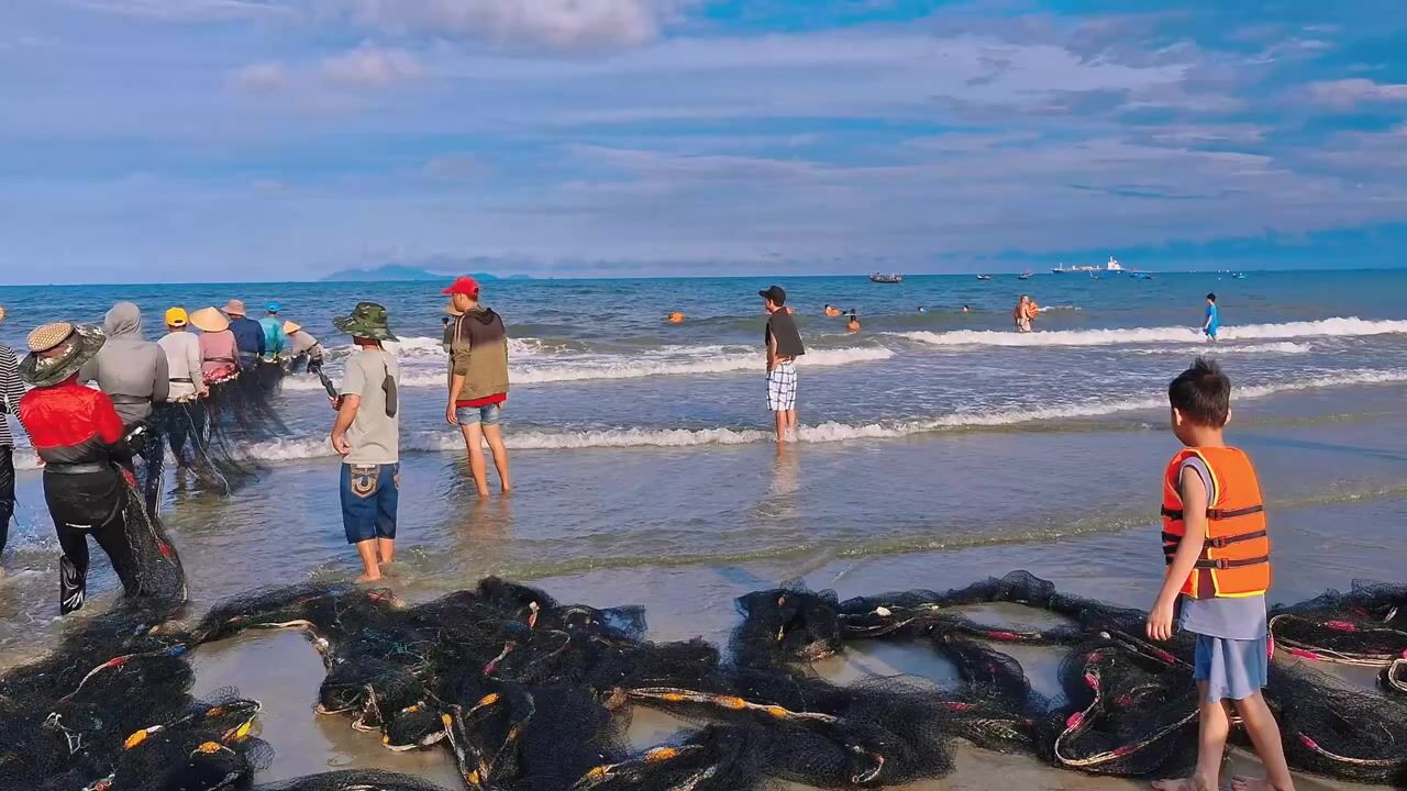 [4K 60fps] Da Nang вытаскиваем морской невод на берег и смотрим какой улов достали местные рыбаки
