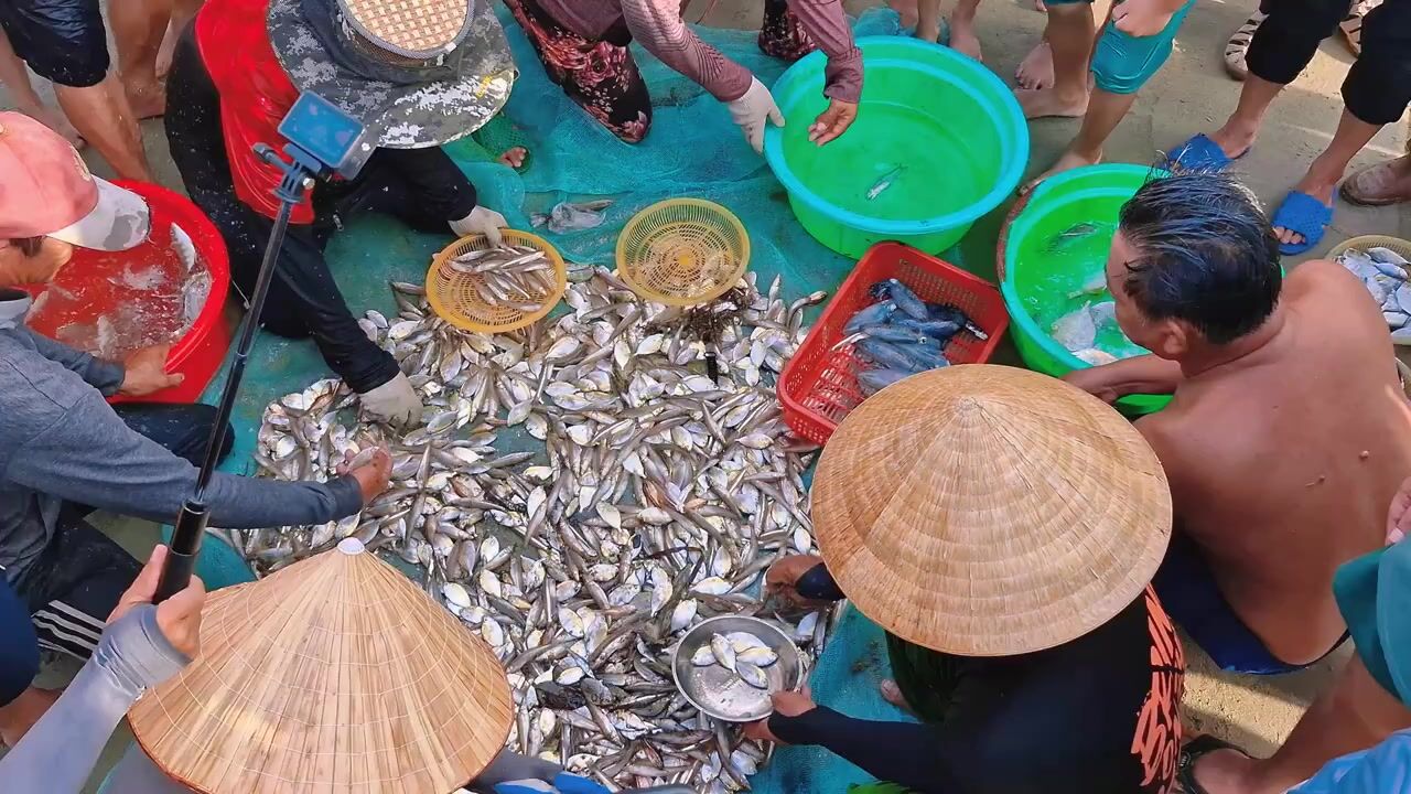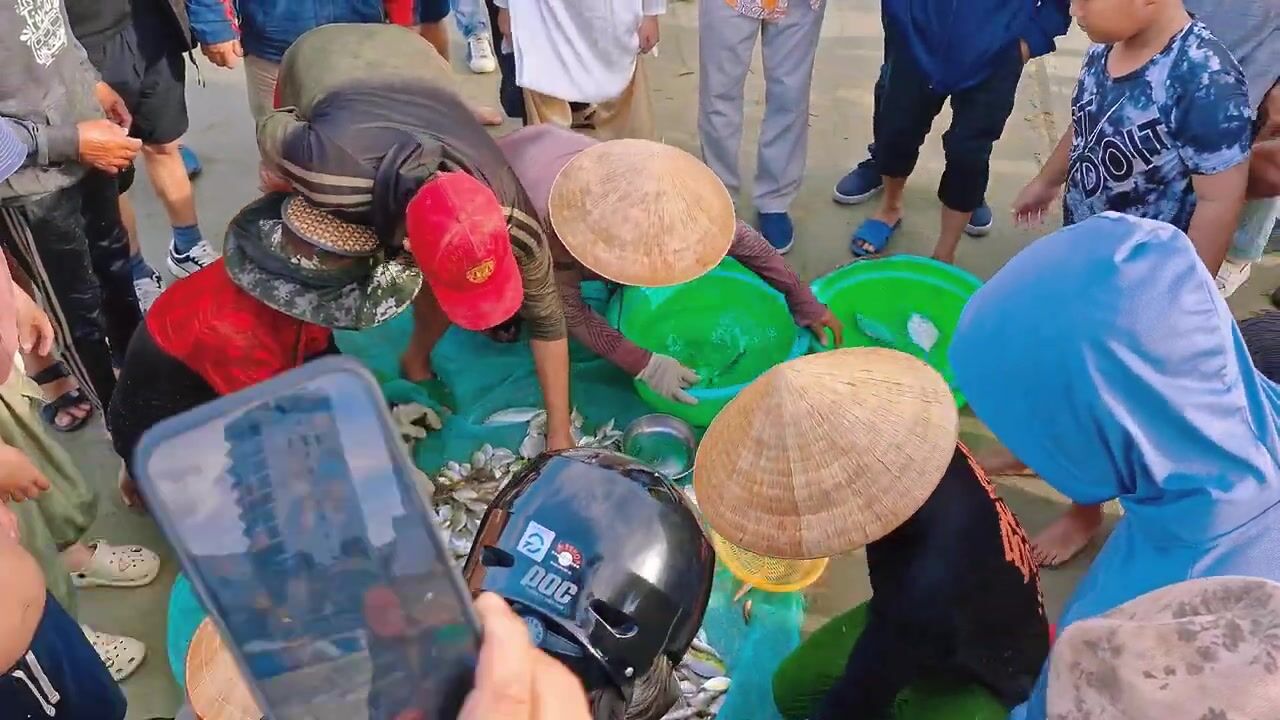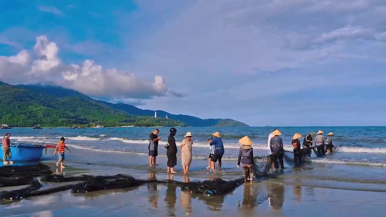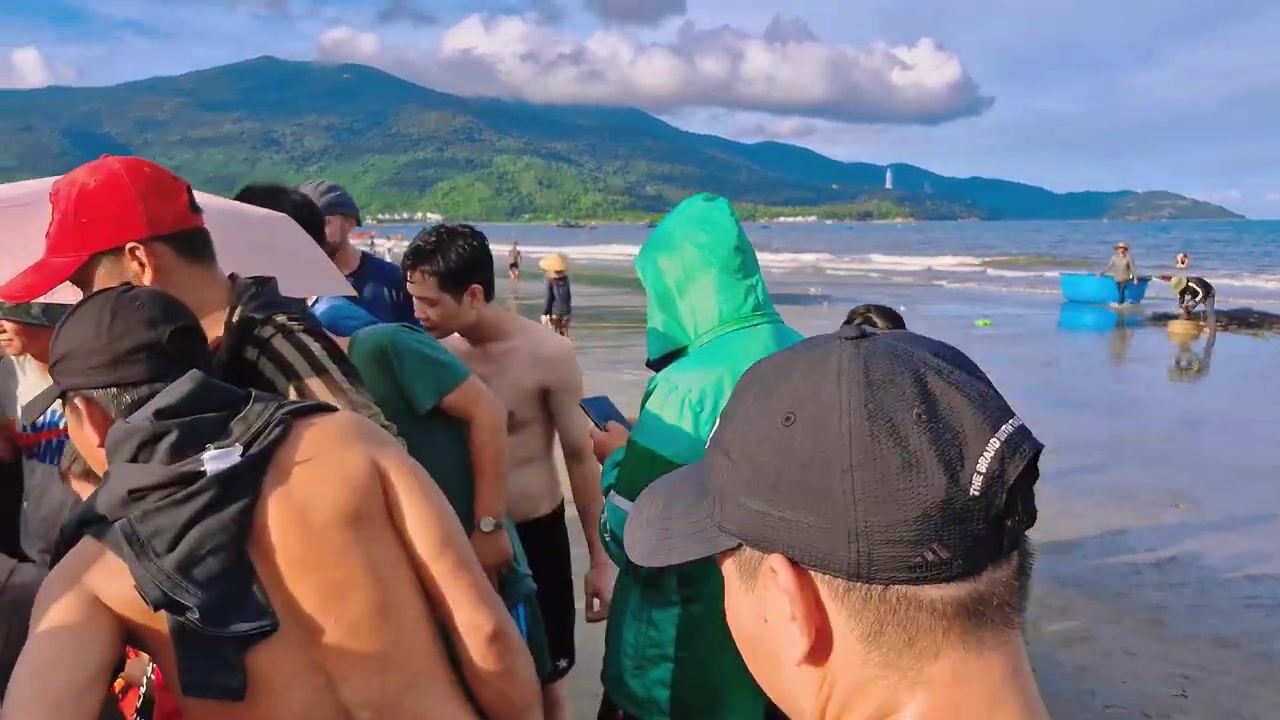 [4K 60fps] Da Nang вытаскиваем морской невод на берег и смотрим какой улов достали местные рыбаки