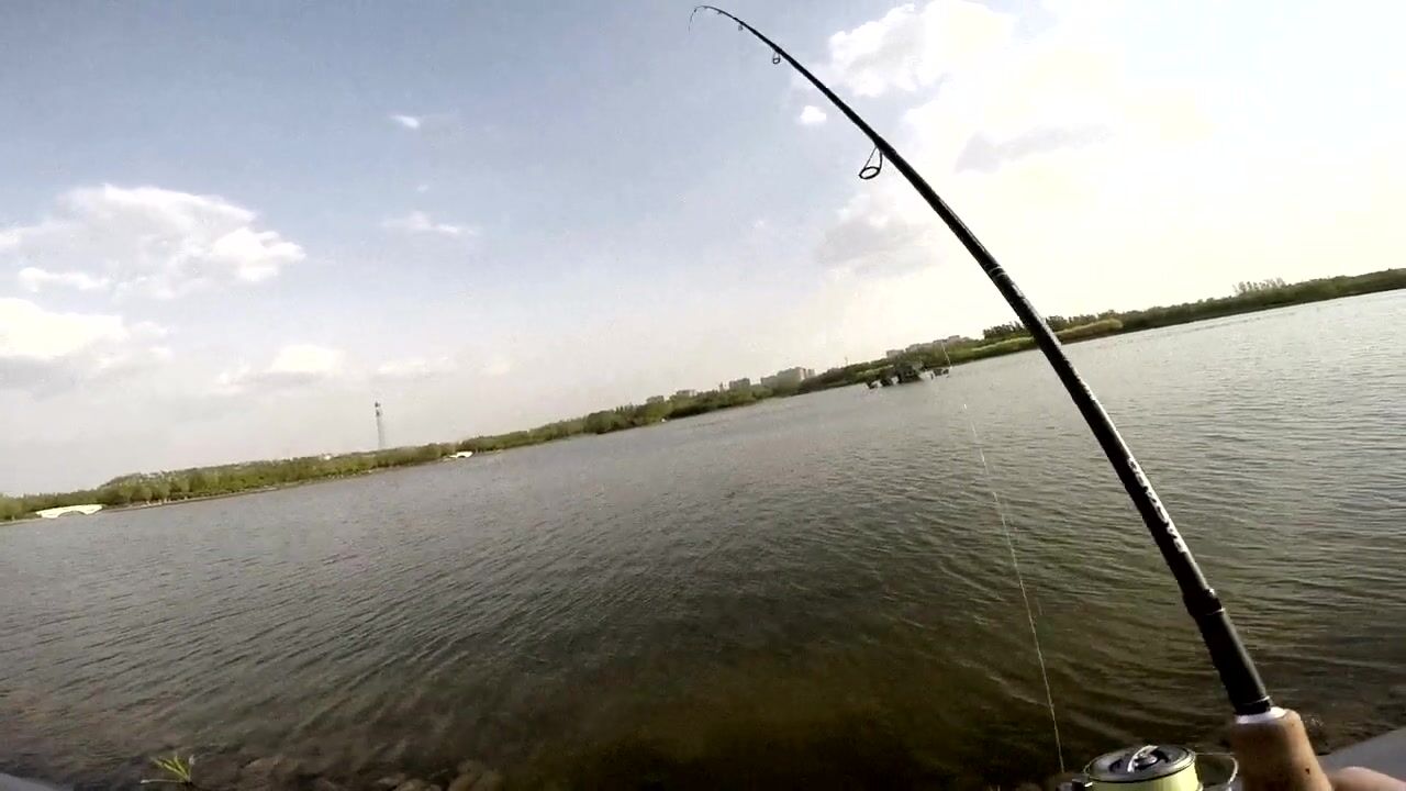 Freshwater fishing в Пекине, Китай спокойная рыбалка в городском парке среди высоток