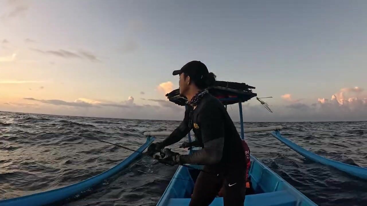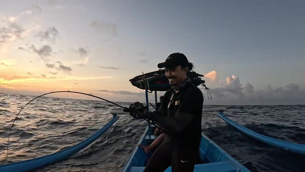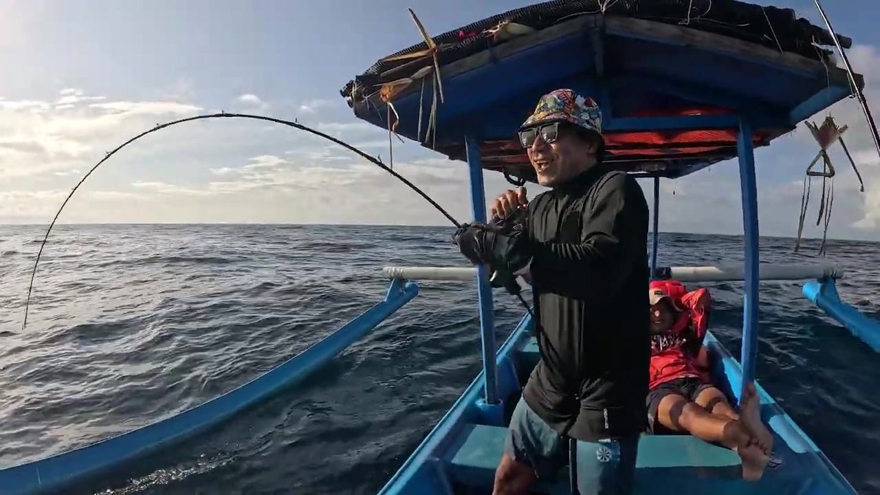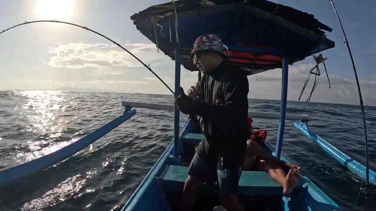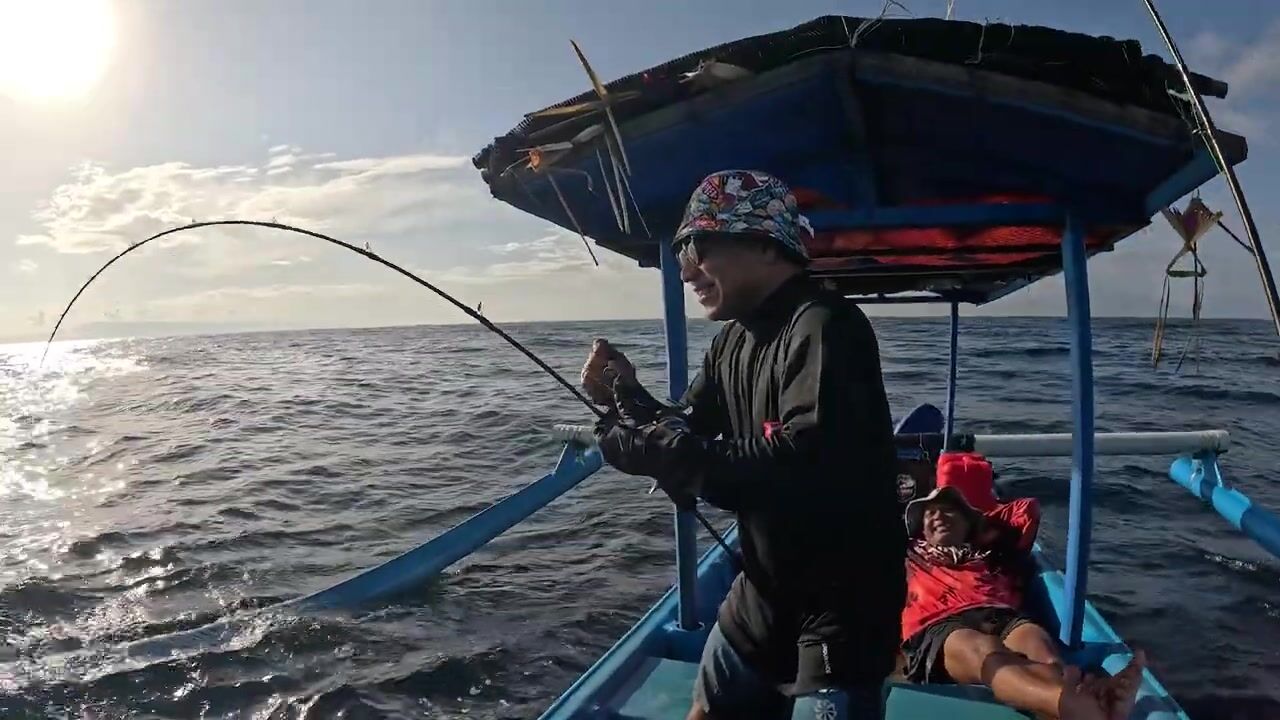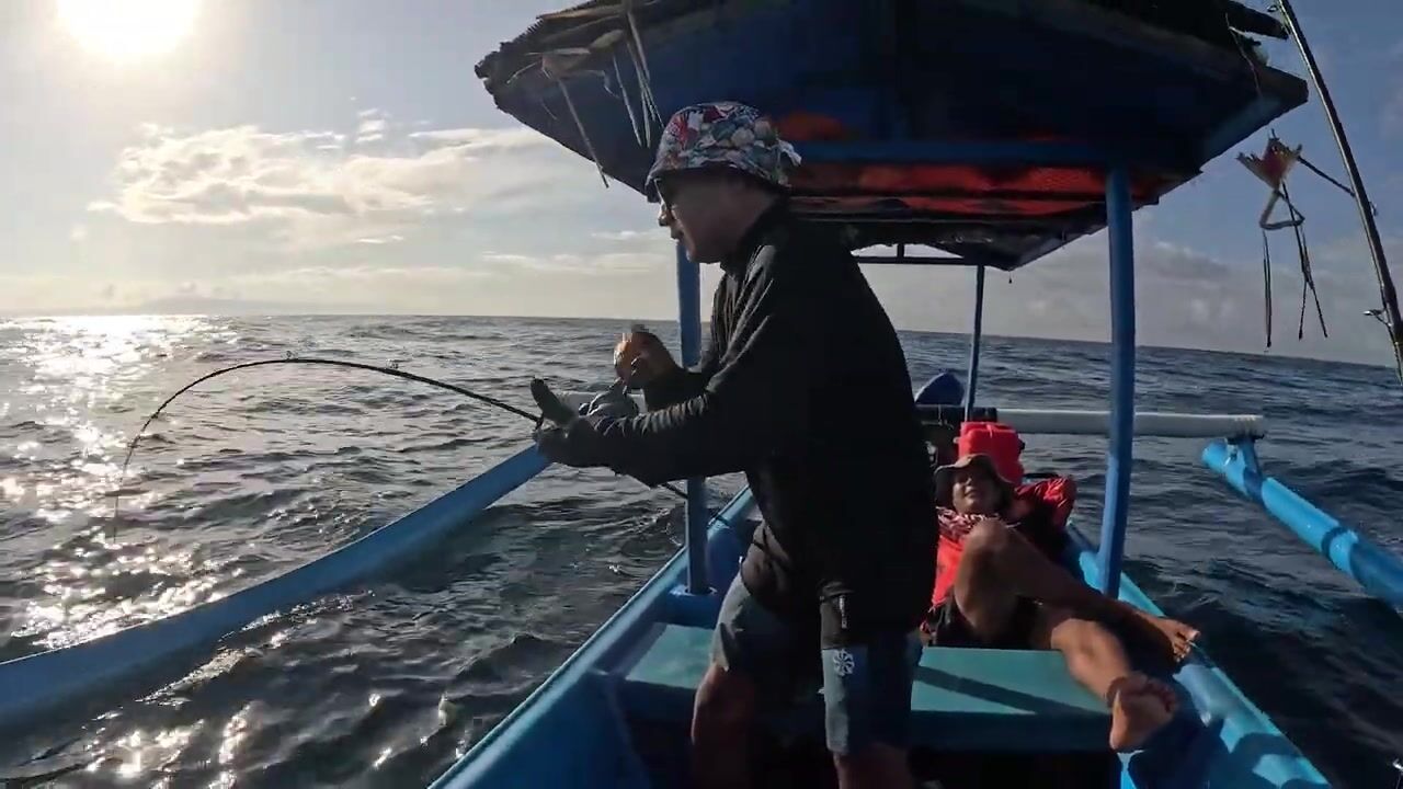 Утренняя рыбалка в море Бали, Индонезия. Район Ловина. Тунец бонито