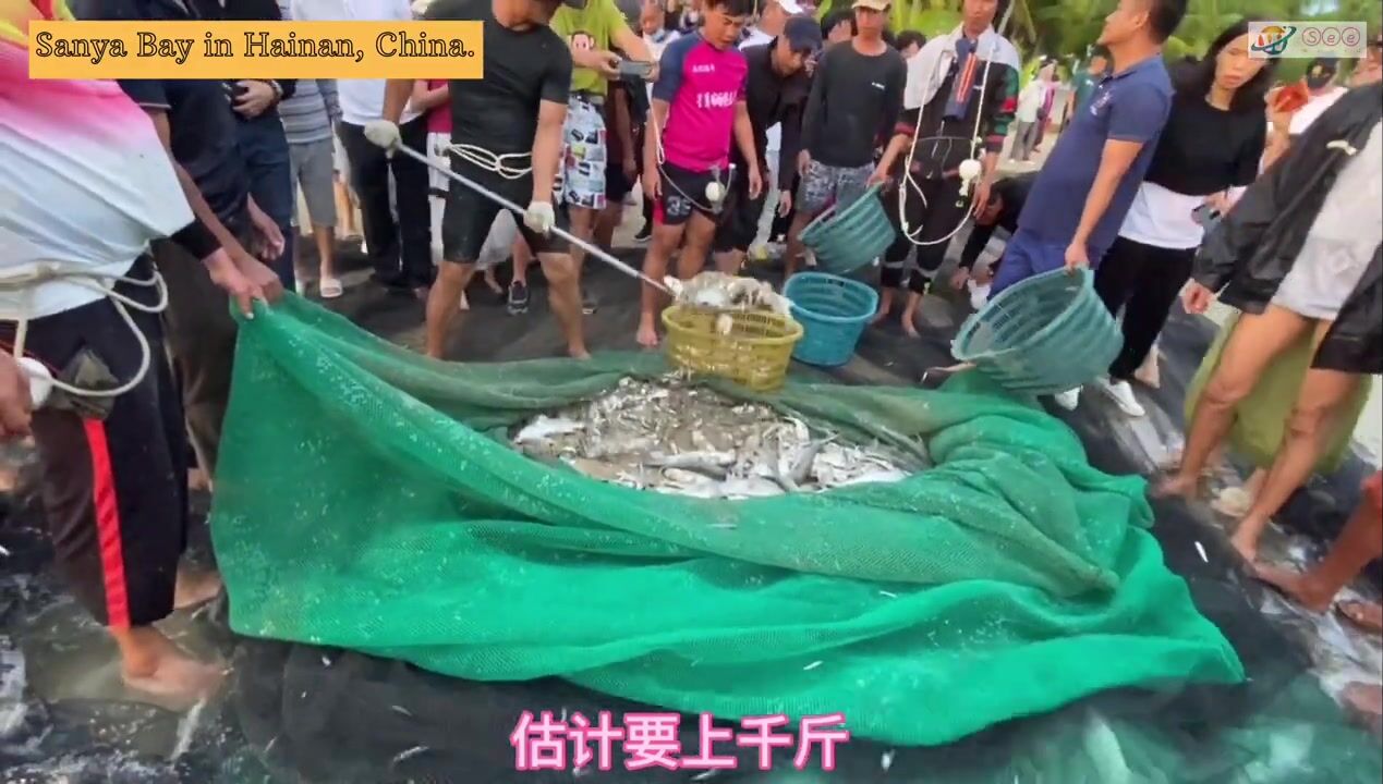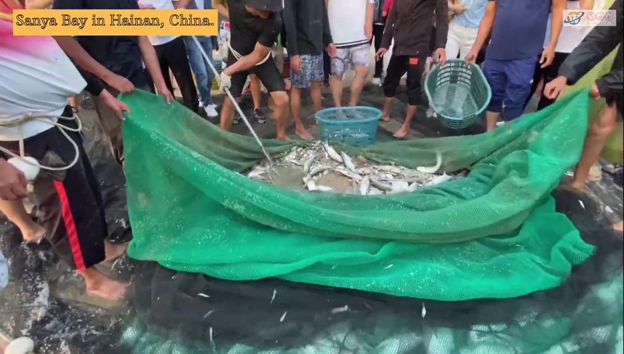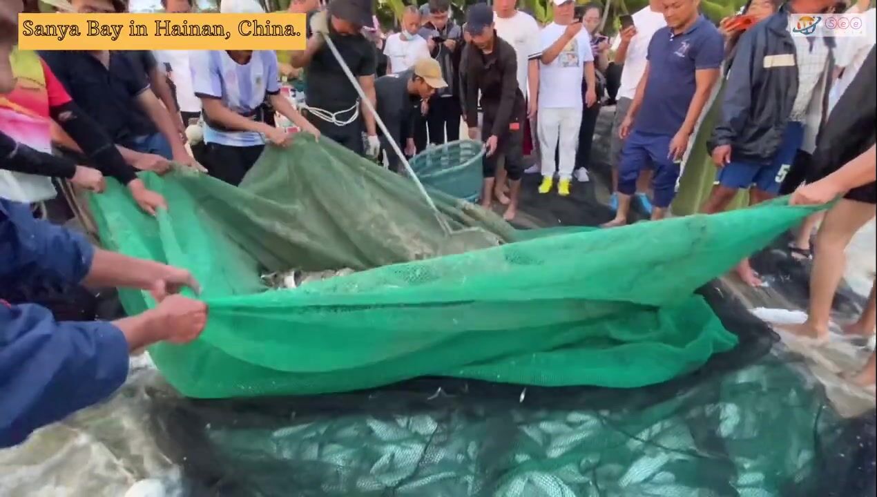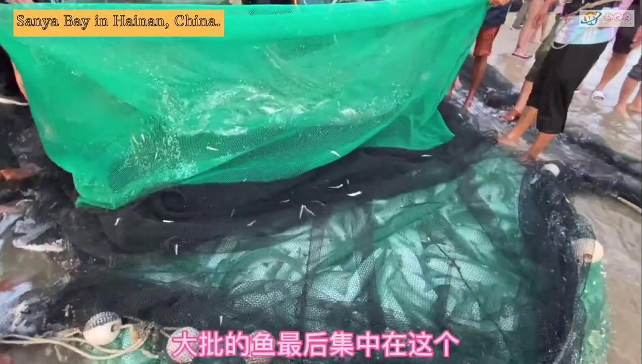 Морская рыбалка в Sanya Bay Hainan огромный улов почти в тысячу килограммов рыбы в одной сети