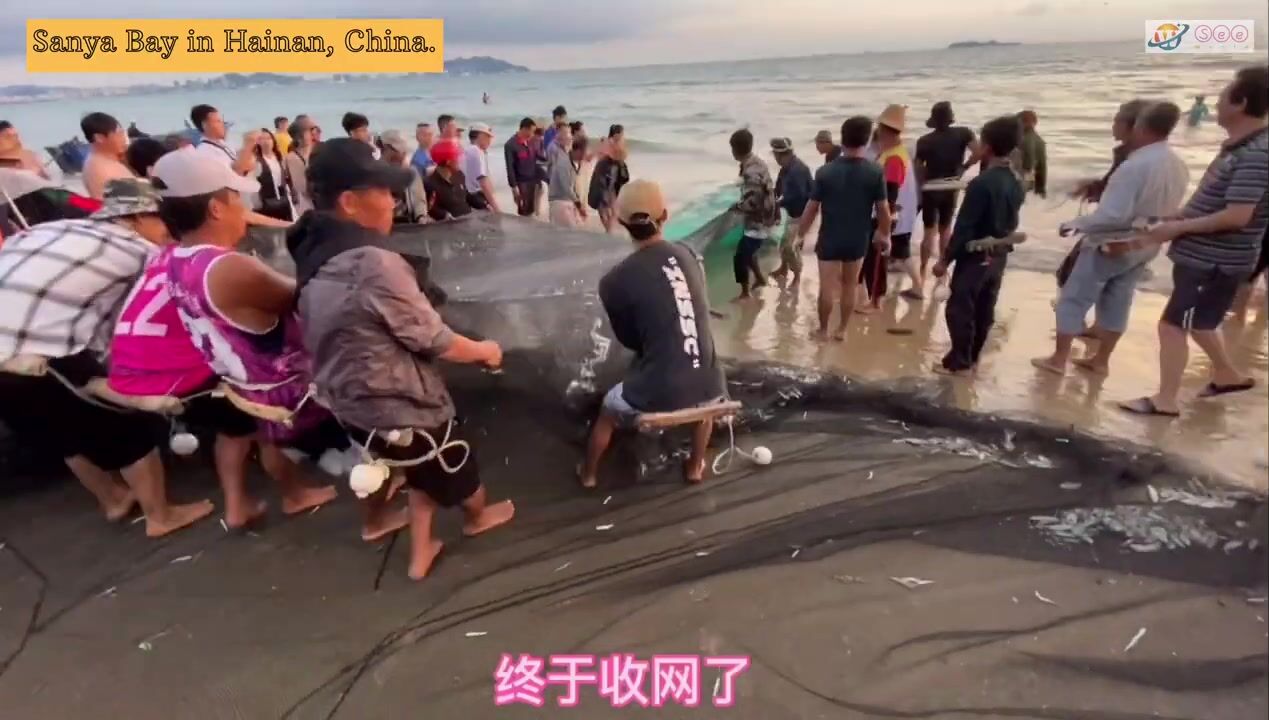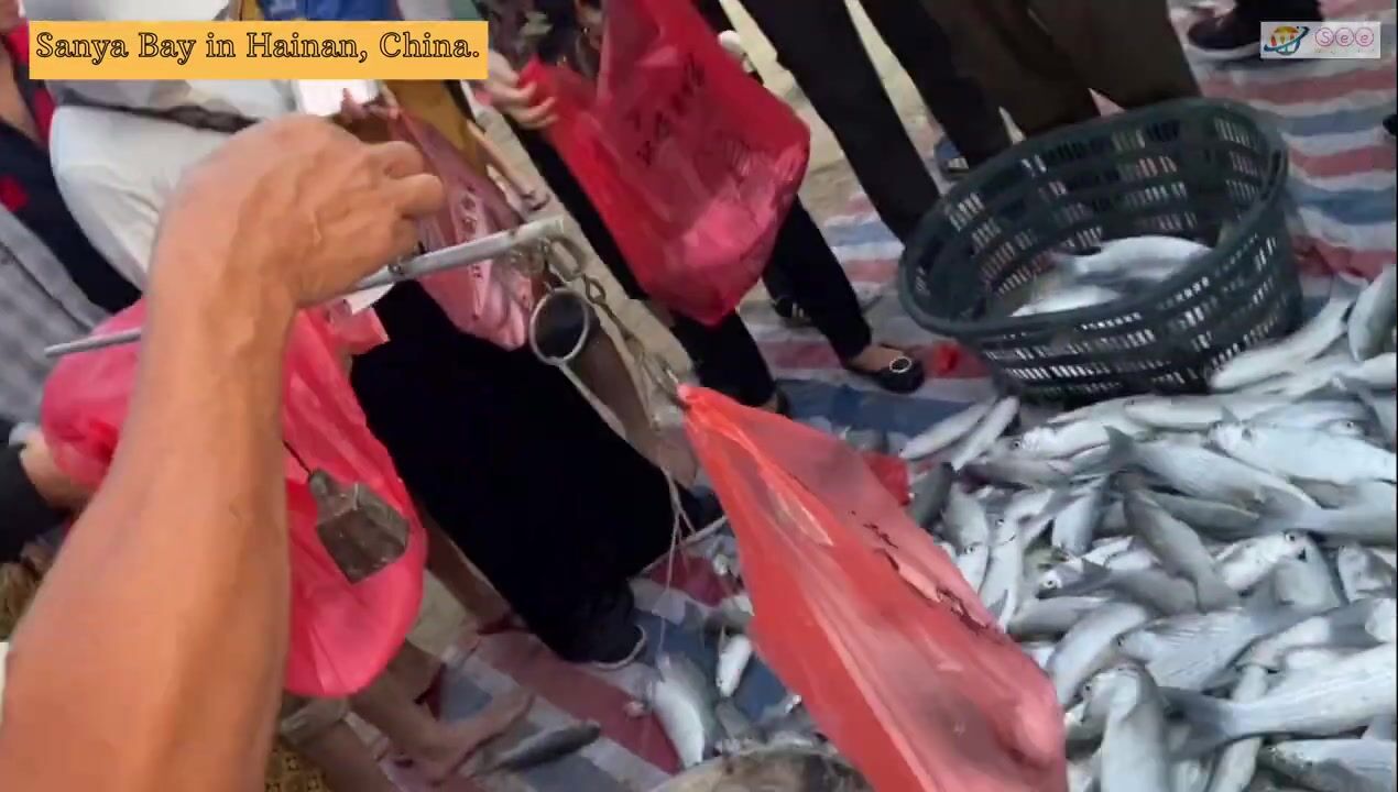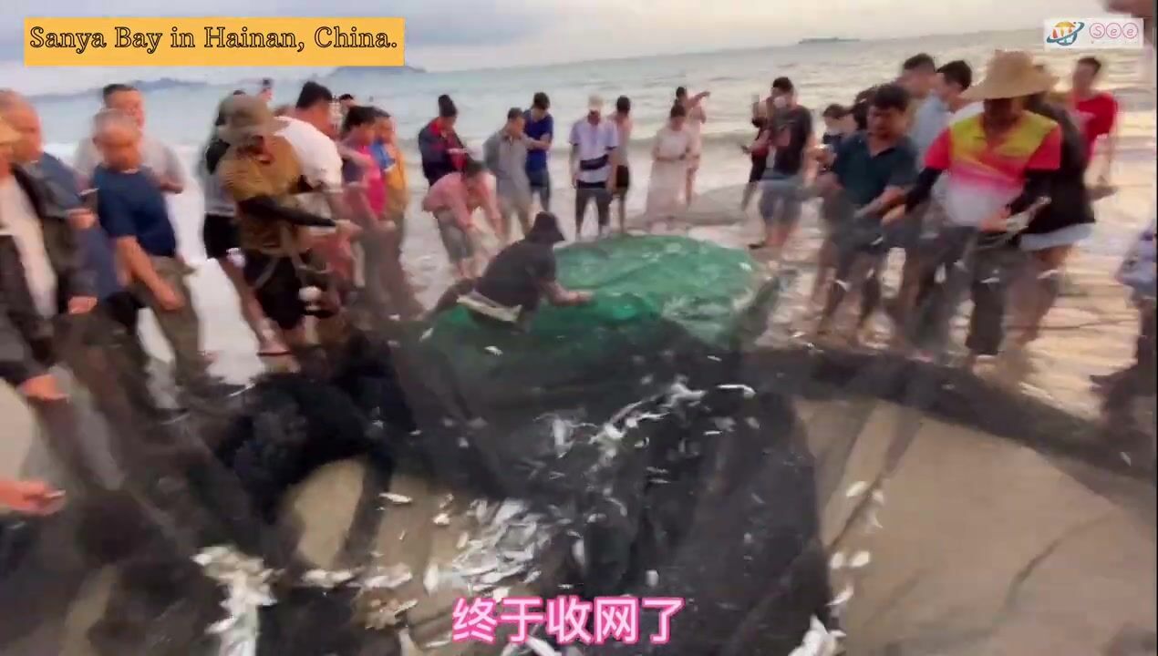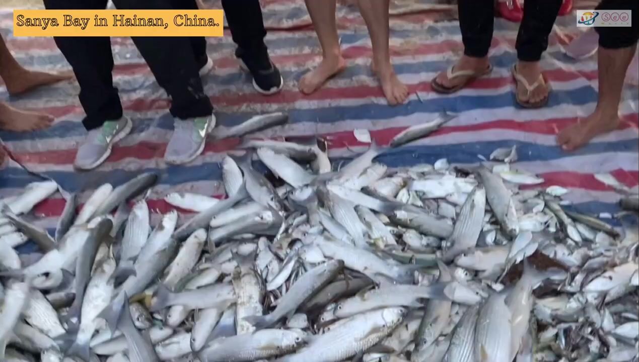 Морская рыбалка в Sanya Bay Hainan огромный улов почти в тысячу килограммов рыбы в одной сети