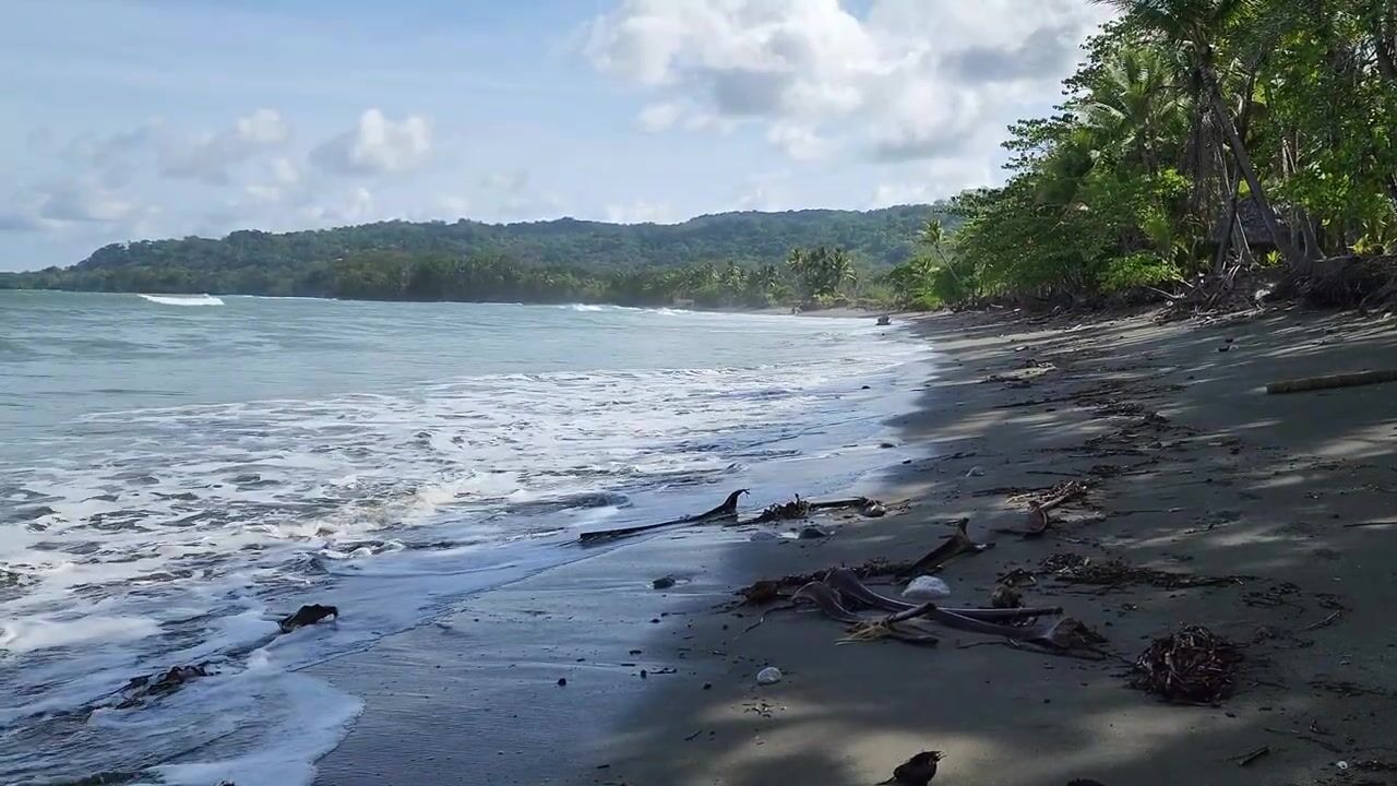 Playa Matapalo Costa Rica тихий пляж джунгли вокруг и сильная волна Тихого океана у берега