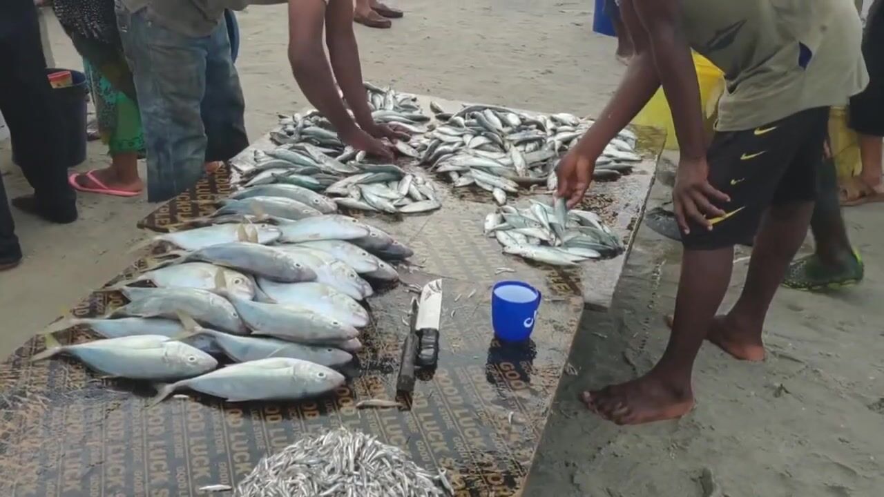 Деревня Chwaka Zanzibar рыбацкий быт лодки на отливе сети на песке и жизнь у лагуны