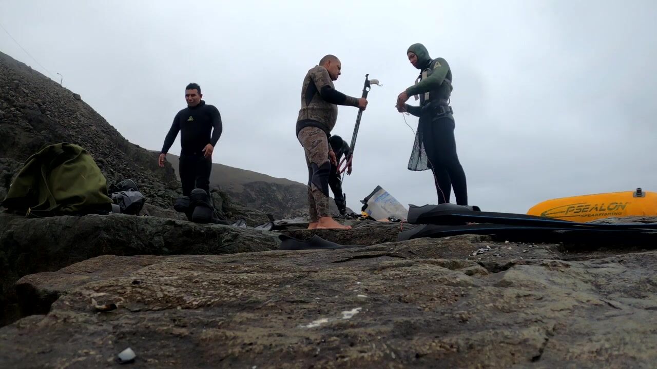 Подводная охота Ancon Lima Peru Playa Santa Rosa с братьями и трофейной рыбой