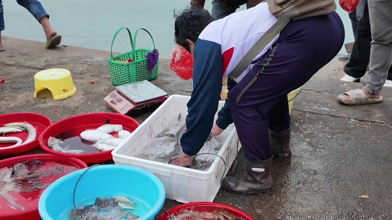 Небольшая рыбацкая деревня на Hainan Island рынок Dongshuigang и свежая рыба с утра