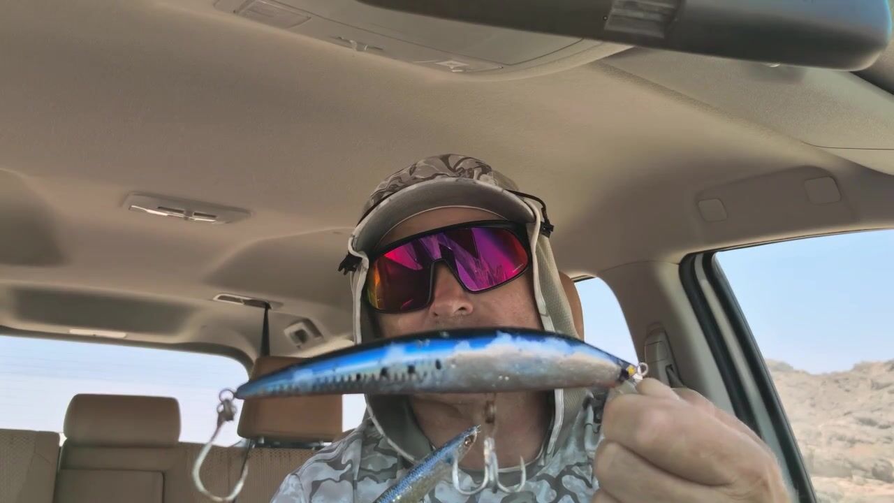 Оман, апрель 2025 - жара, песок в зубах, ветер лупит с берега, но рыбалку не отменишь. Утром жарил рыбу прямо на углях, без масла, потом засыпал костёр щебнем, чтоб не тянуло дымом. Обед в тени джипа, потом сразу на берег - вода прозрачная, дно видно. Первый заброс - воблер Duel Hardcore 120, через минуту снэппер где-то на кило, удар резкий, фрикцион свистит. Радость короткая - дальше тишина. Вижу брина, вроде крупный, выходит к берегу, но не берёт ни воблер, ни силикон, ни кастмастер - ноль реакции.