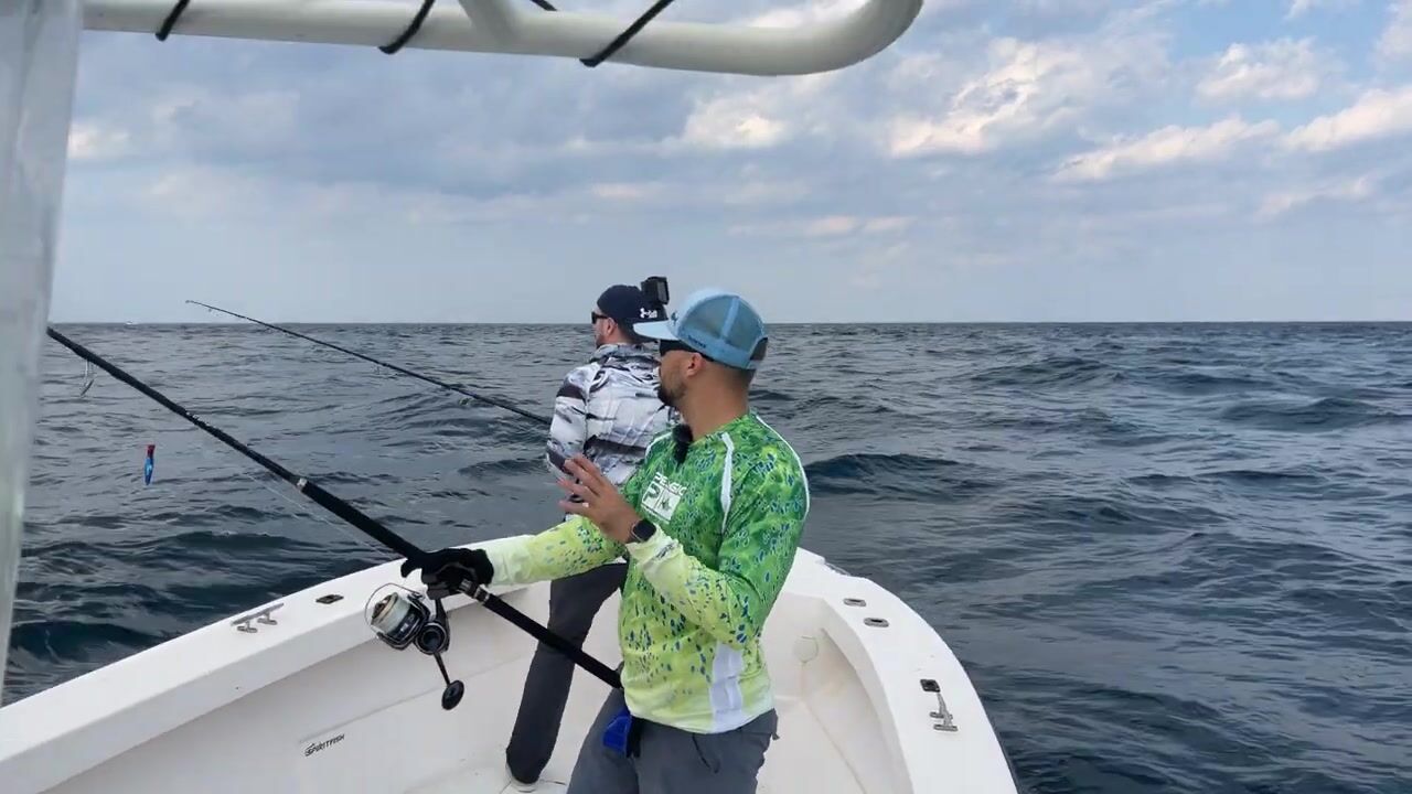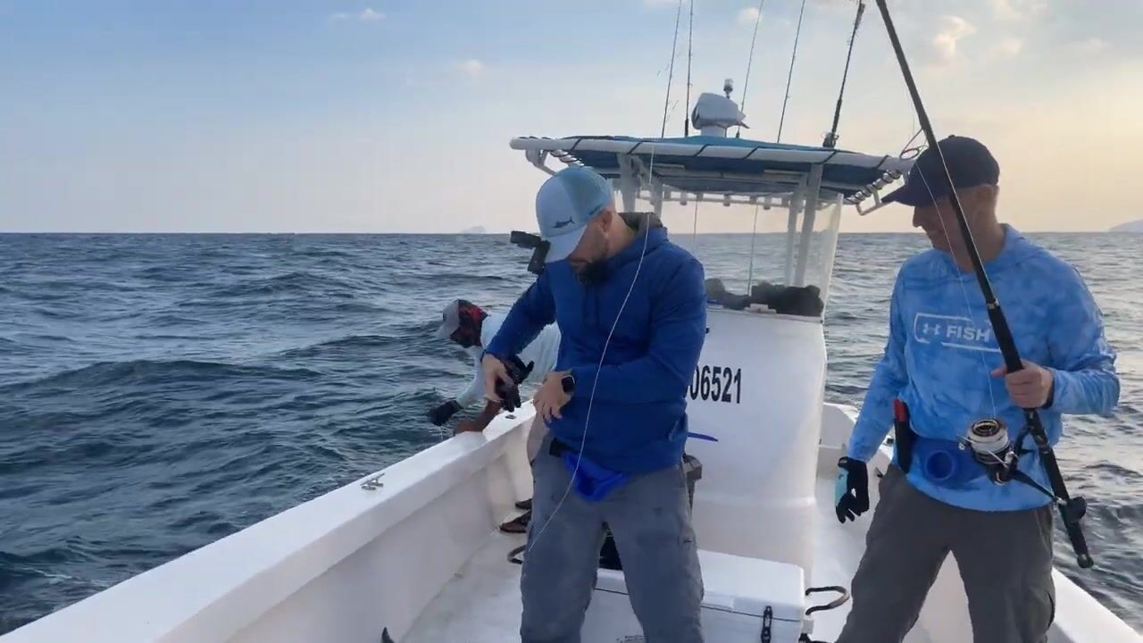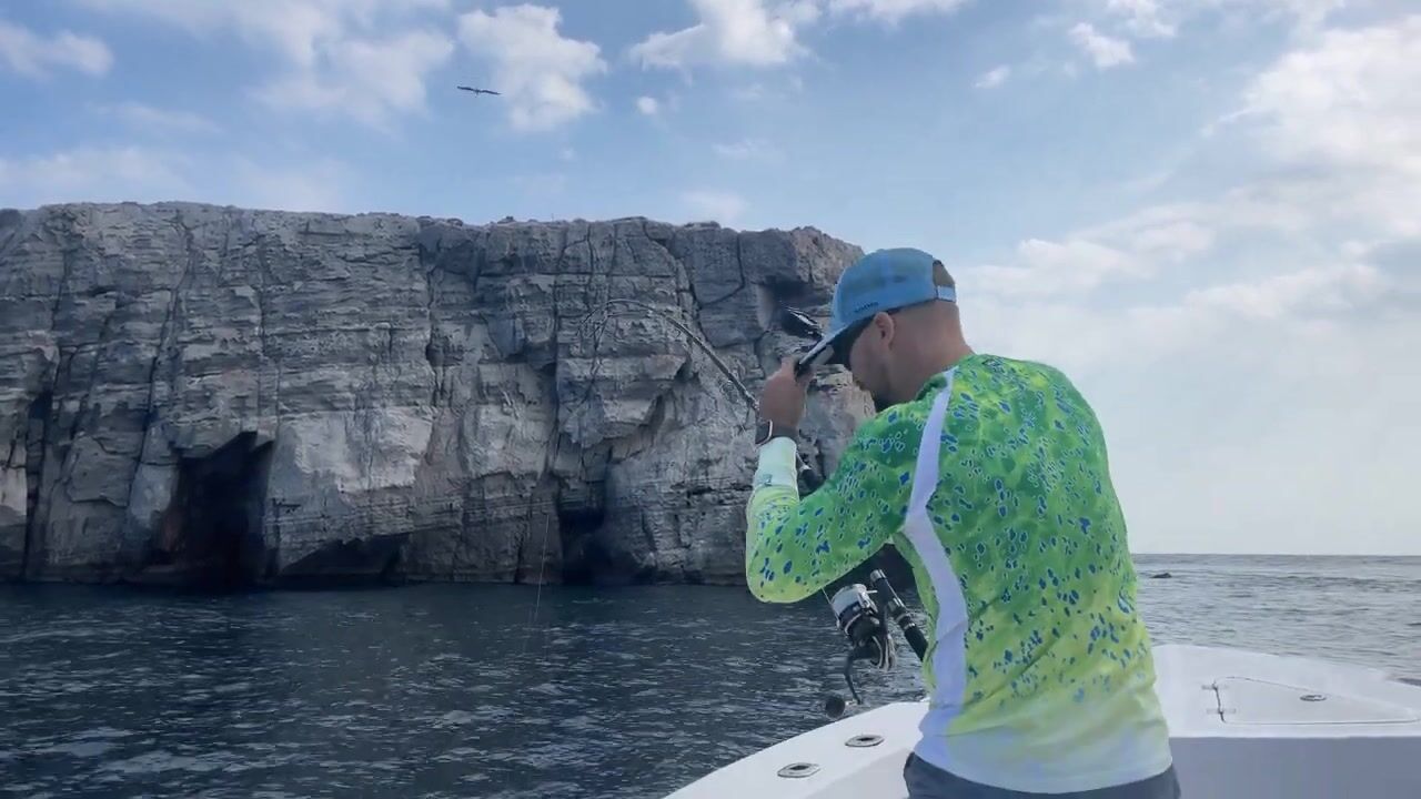 Утро началось с забитого туалета, починили и вышли. Первая поклёвка сошла, у Серёги тоже. Обогнули коралловый риф, волны скользкие, но для GT самое то, проводку приходится собирать по кускам. Серёга берёт на джиг, обсуждаем подачу. Работаем на 45–55 метрах, правила правилами, но бывают исключения. Взялся язь, отпустили. Сокол прилетел на обед, подкармливаем, смотрим реакцию. В финале тяжёлый окунь, вытащили, сфоткались и вернули, итоги подвели на палубе
