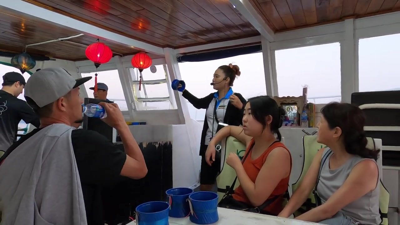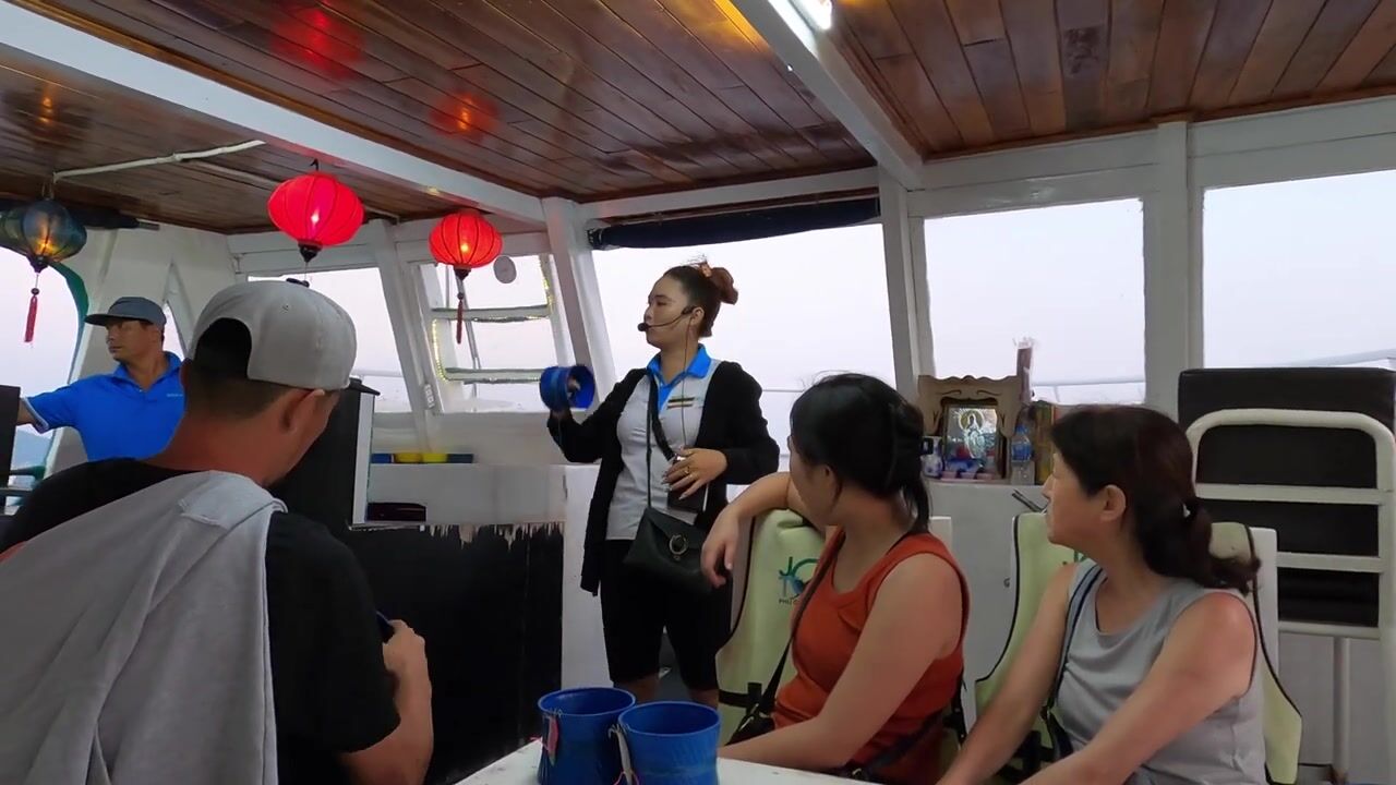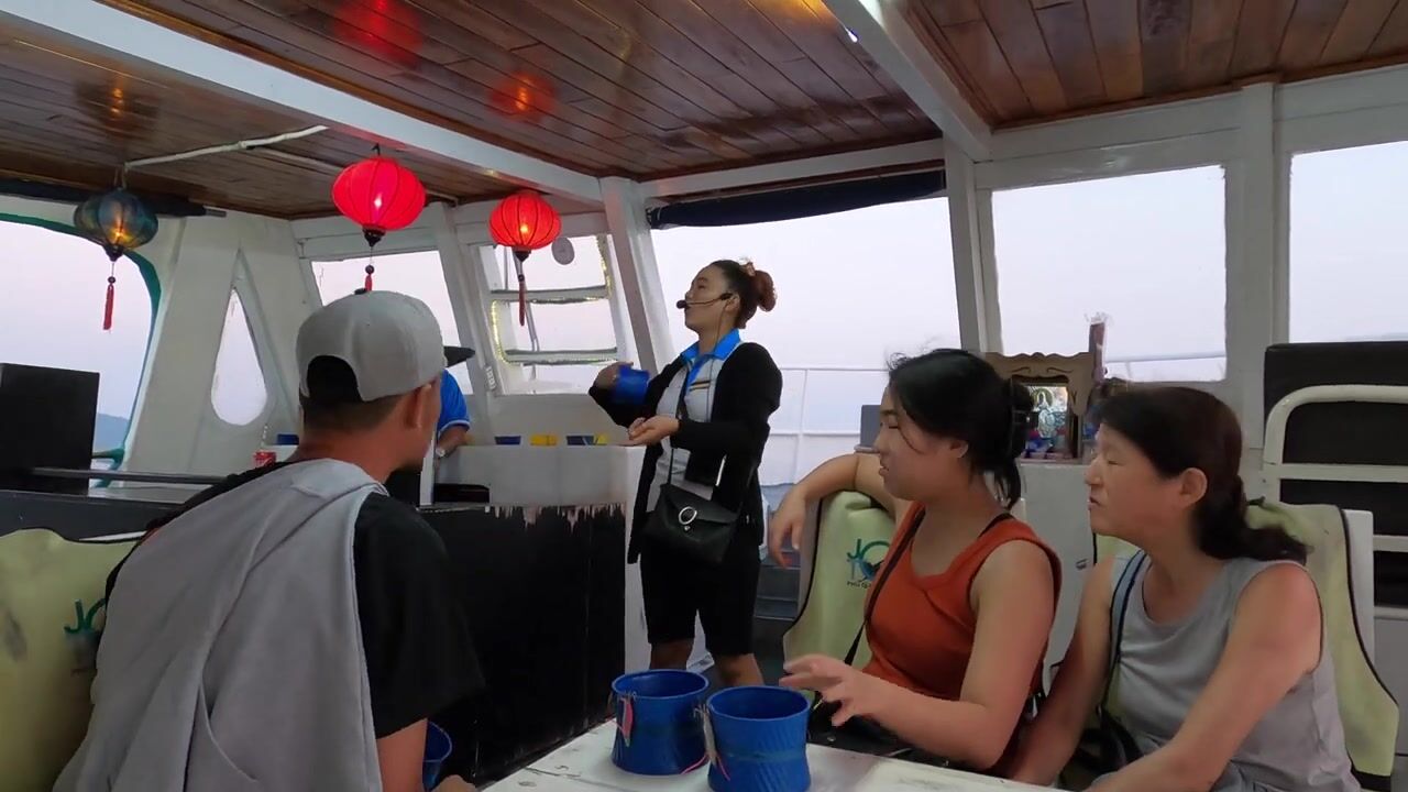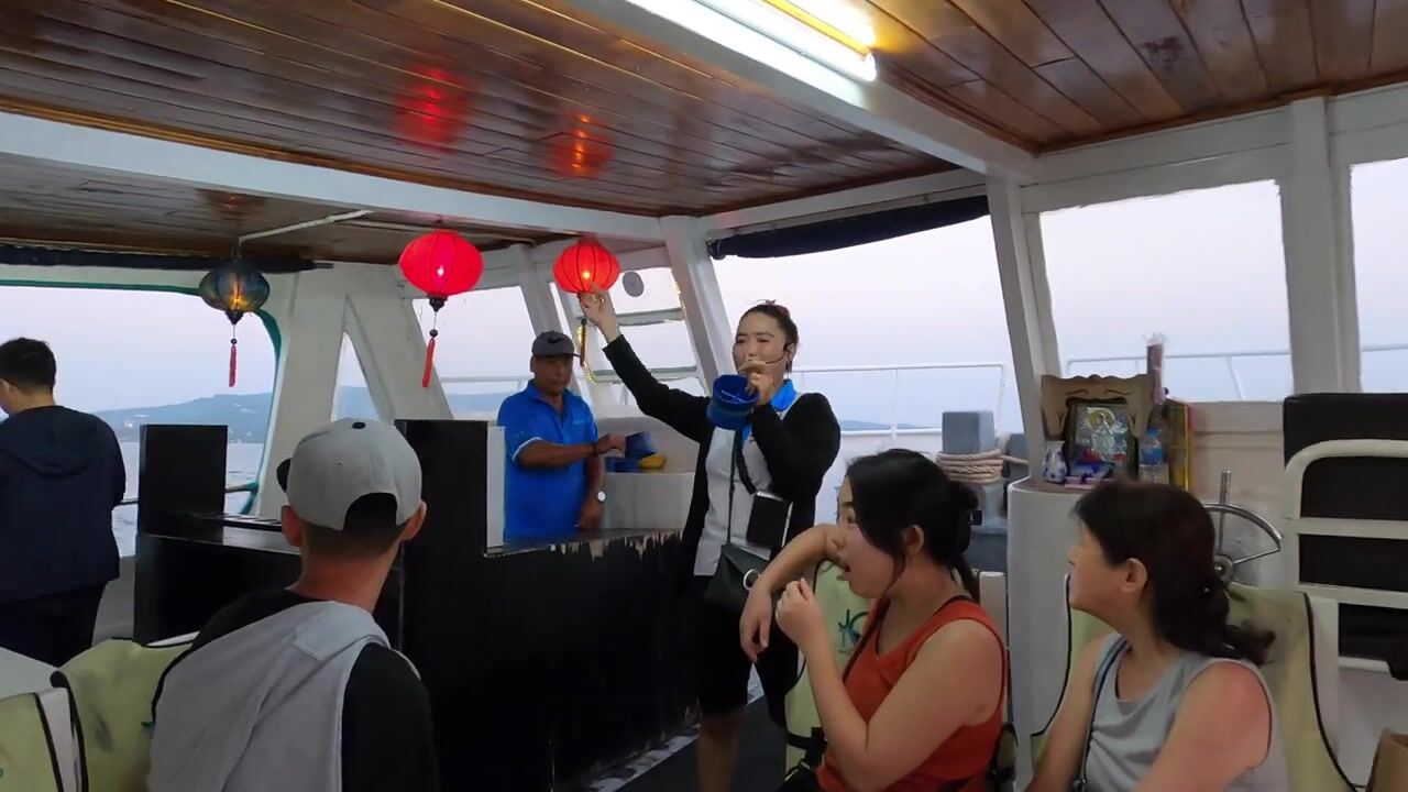 Ночная рыбалка на кальмаров Phu Quoc Вьетнам огни лодки и стайки кальмаров под бортом