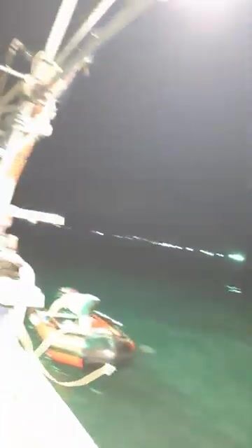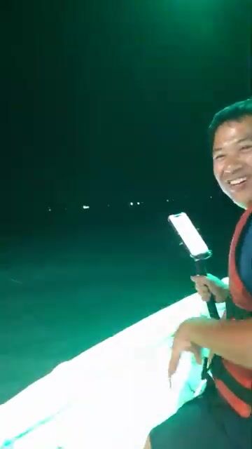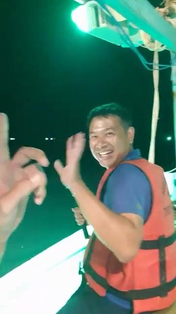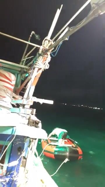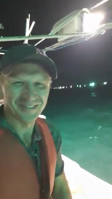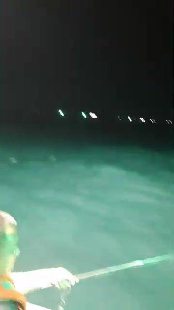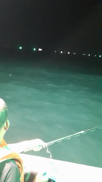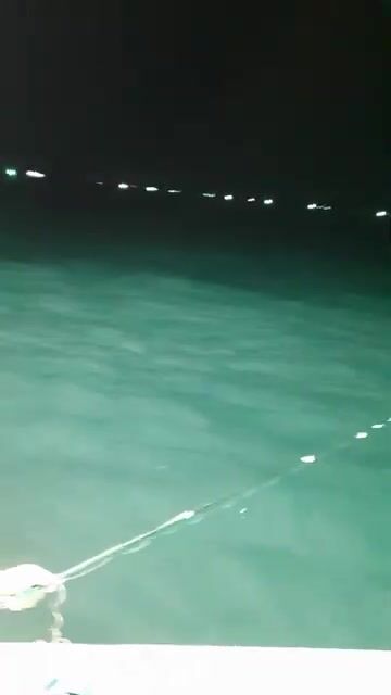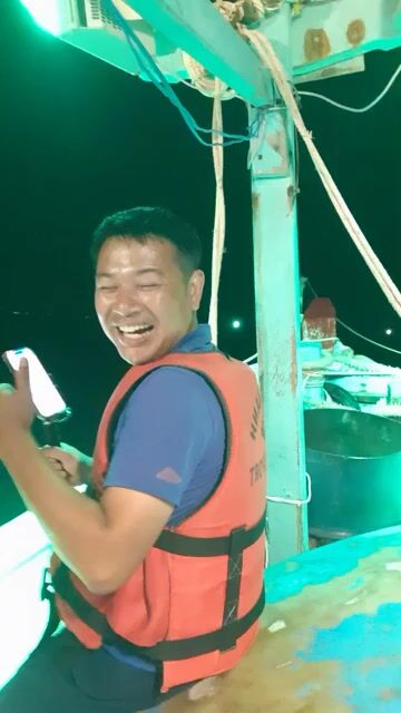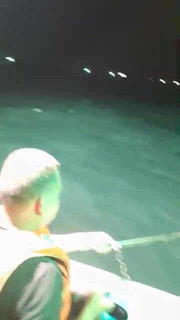 Ночная рыбалка на кальмаров остров Фукуок Вьетнам лодка огни в темноте и крошечные трофеи в ведре